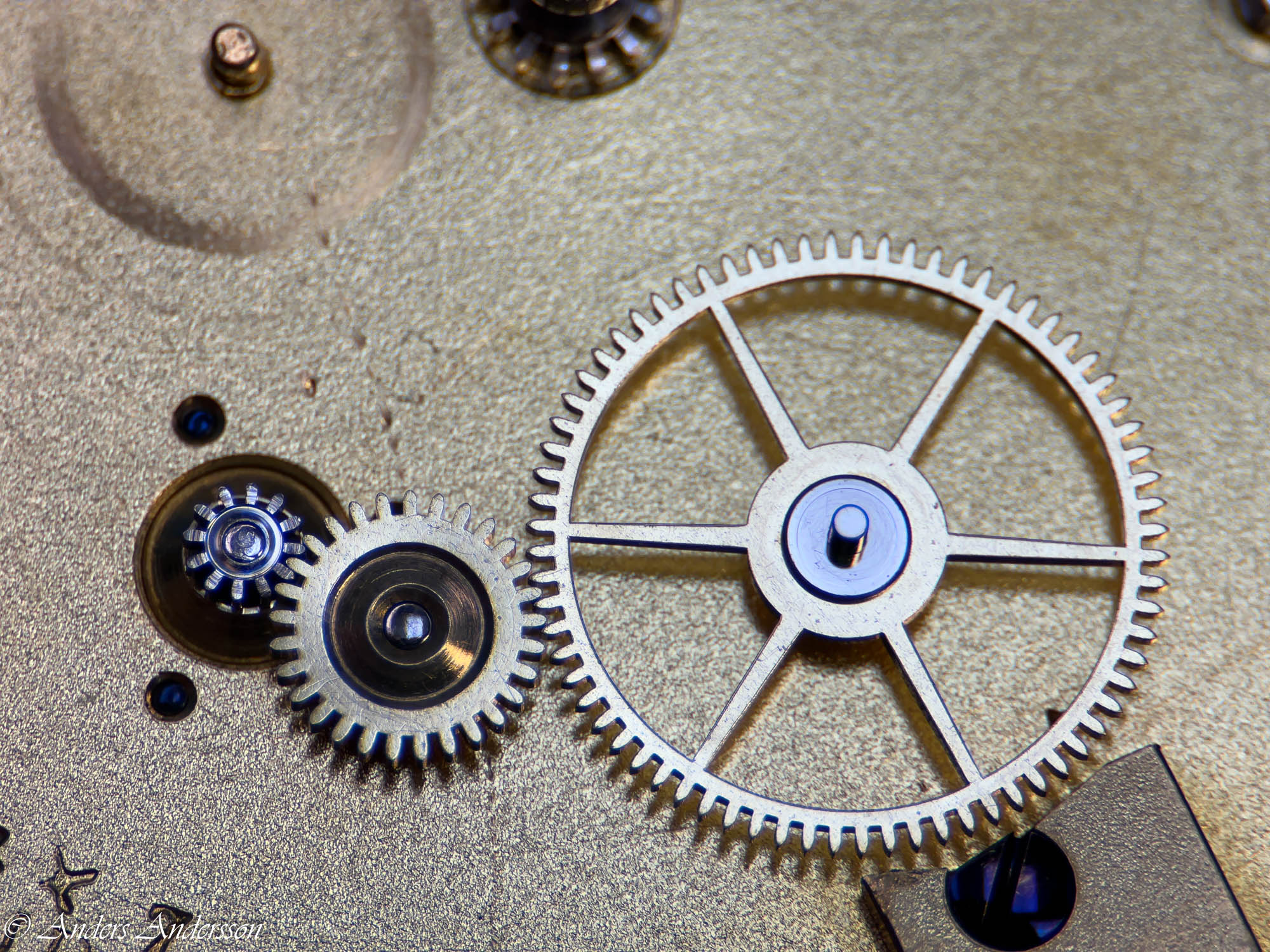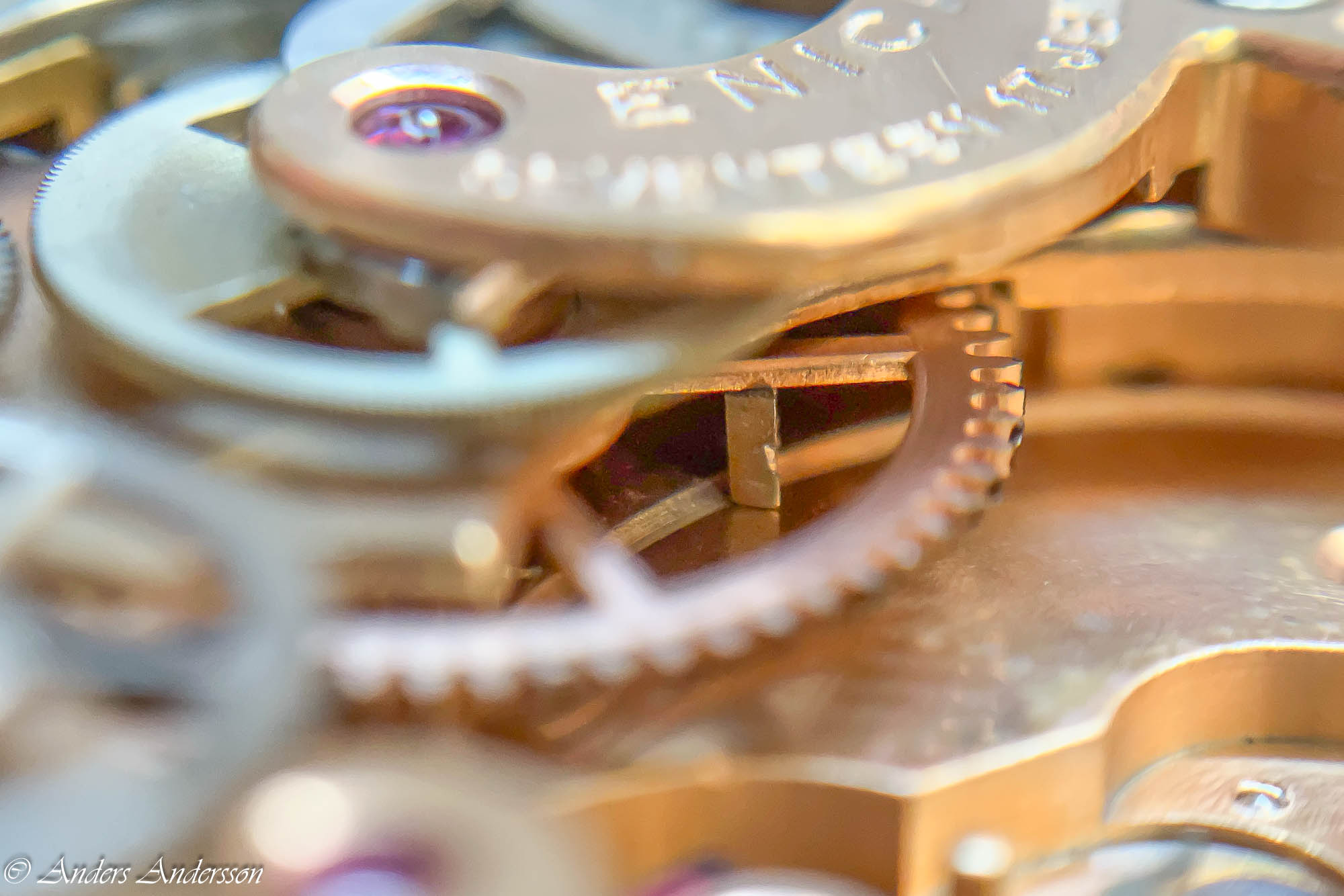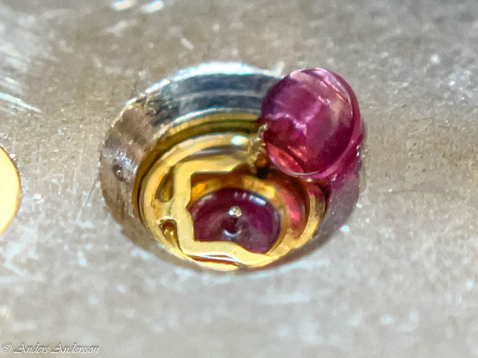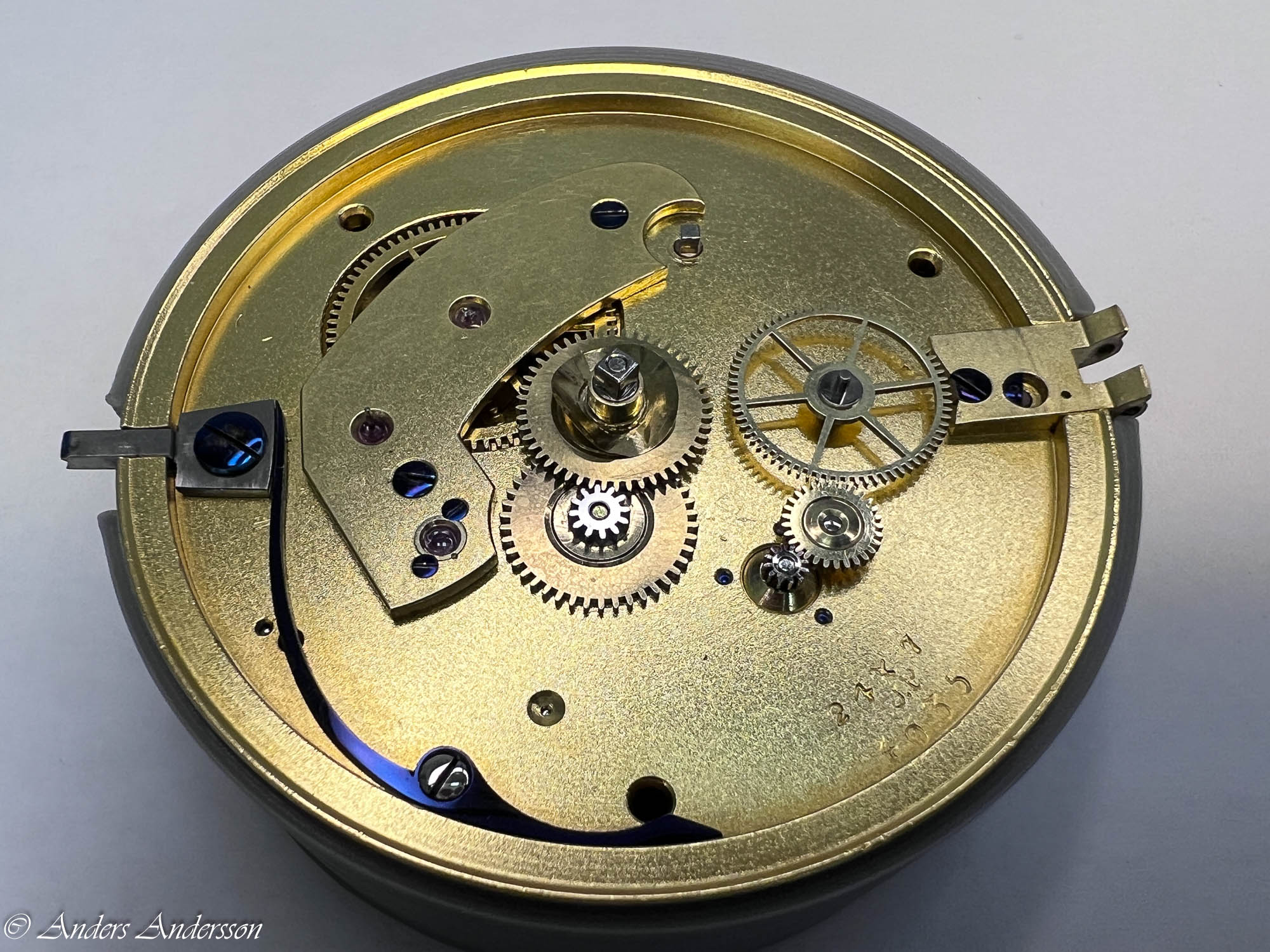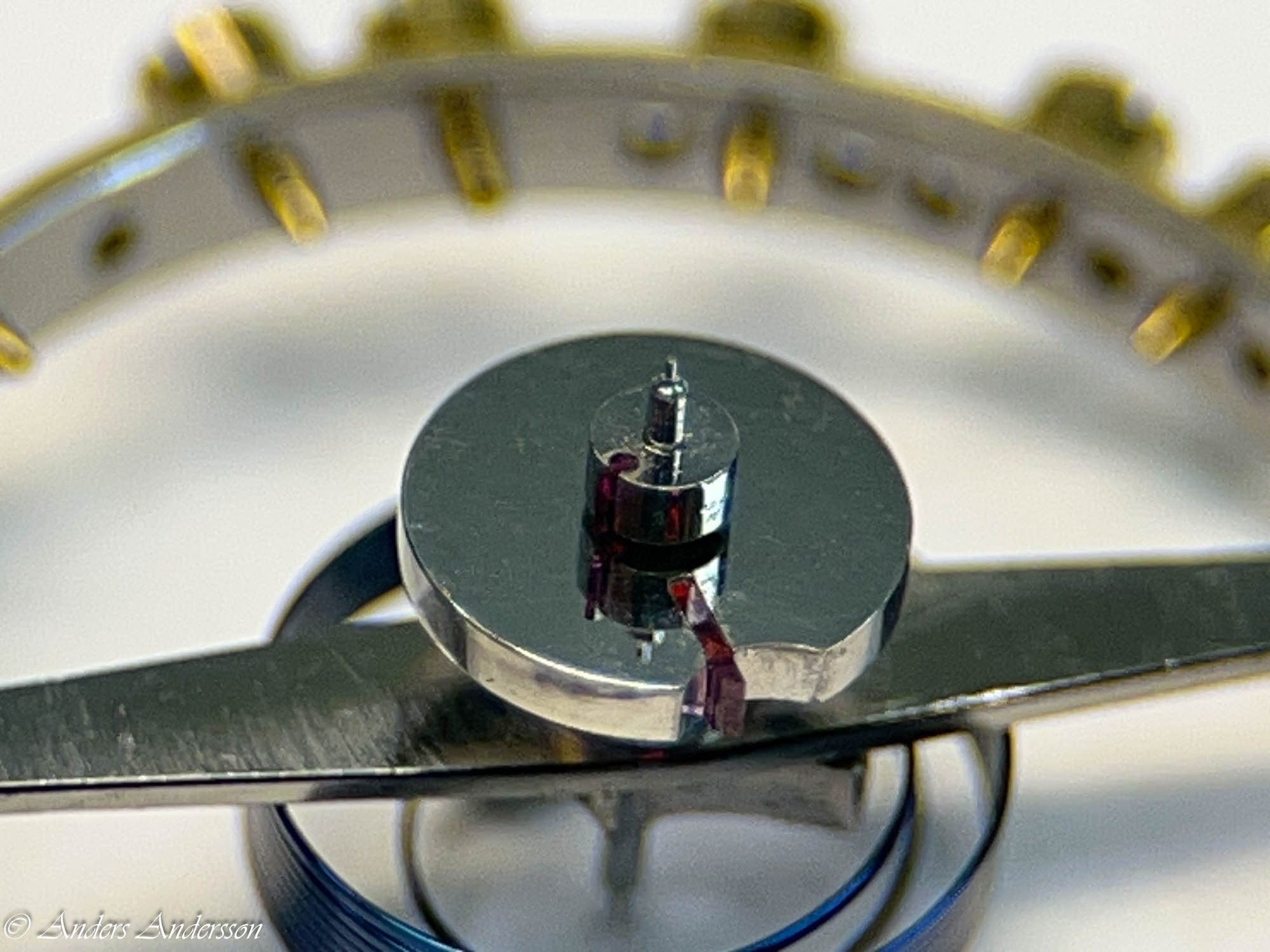 Ganska snart upptäckte jag att verket blivit utsatt för misshandel av en ”så kallad urmakare”. Jag upptäckte många fel och slitage, men även tidigare reparationer av någon med kunskap. På ovanstående bild ser man att hakstenen är flyttad uppåt parallellt med haken.