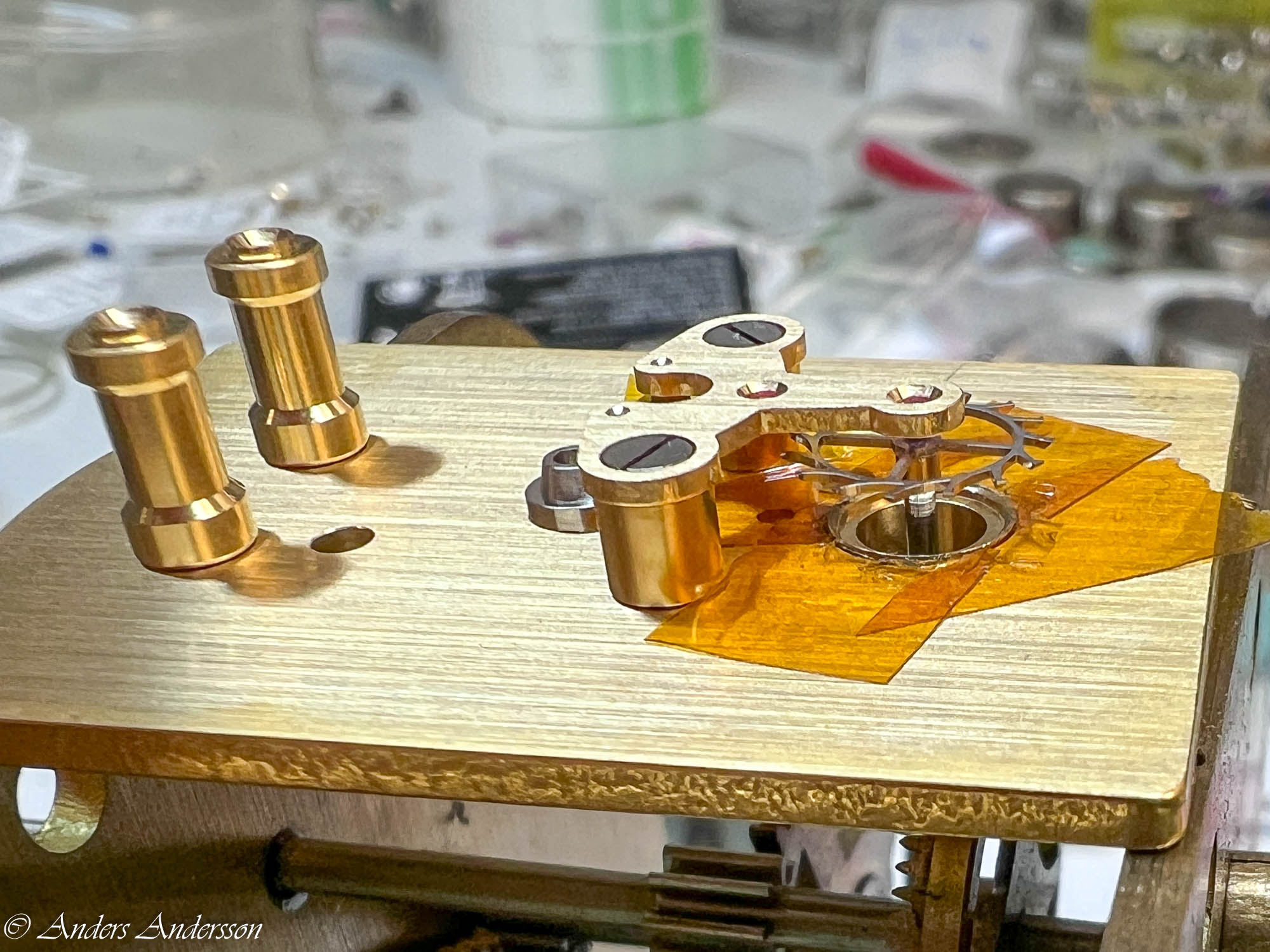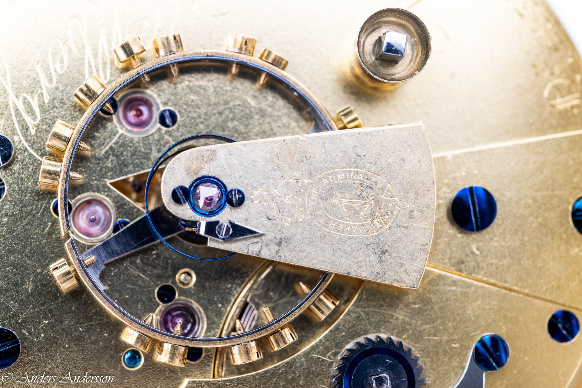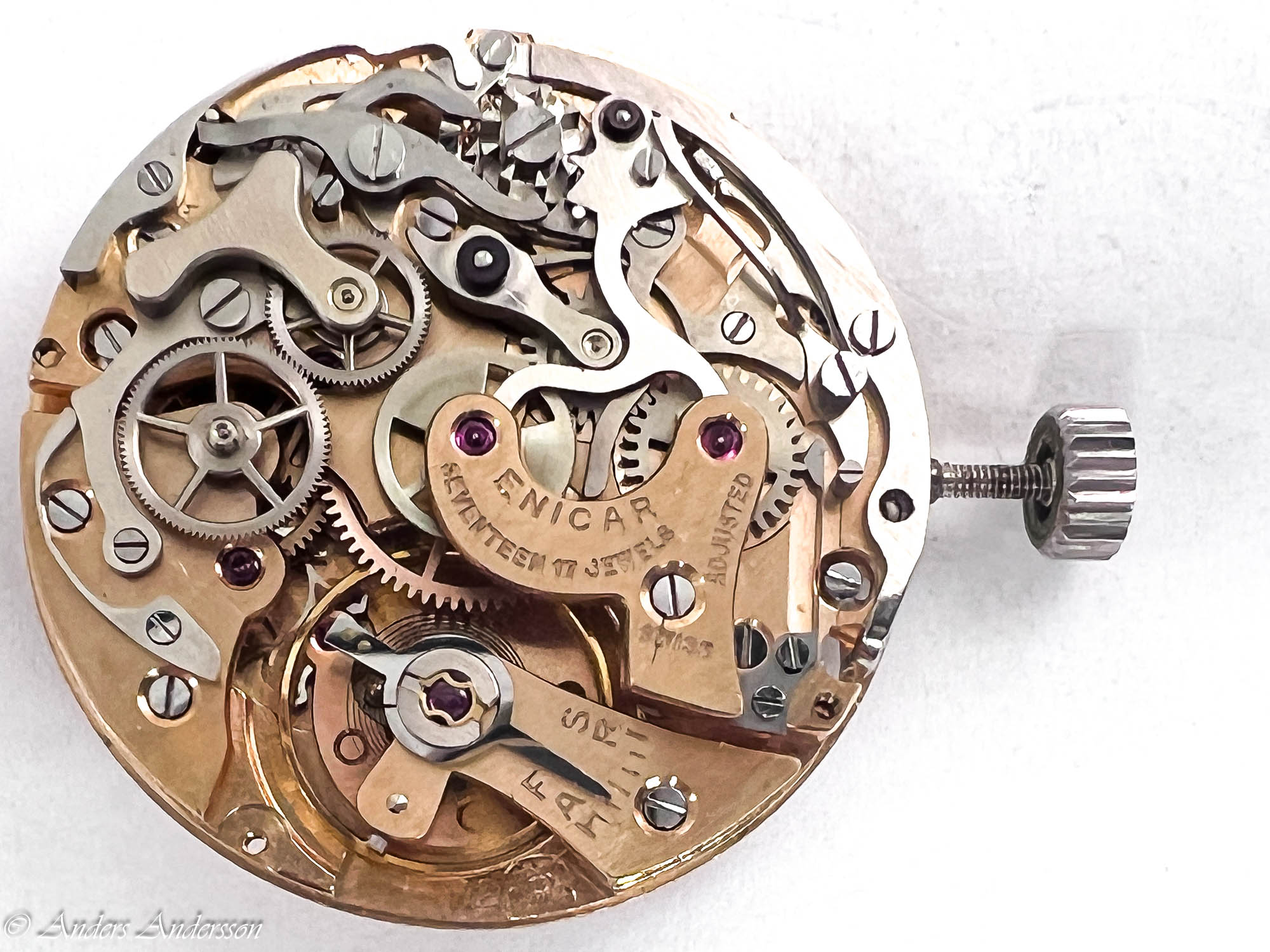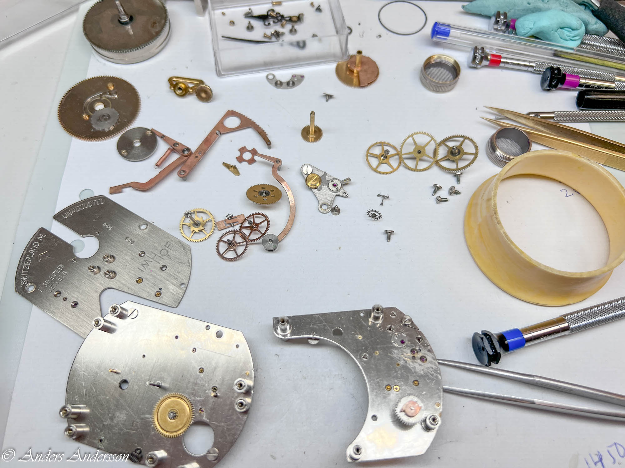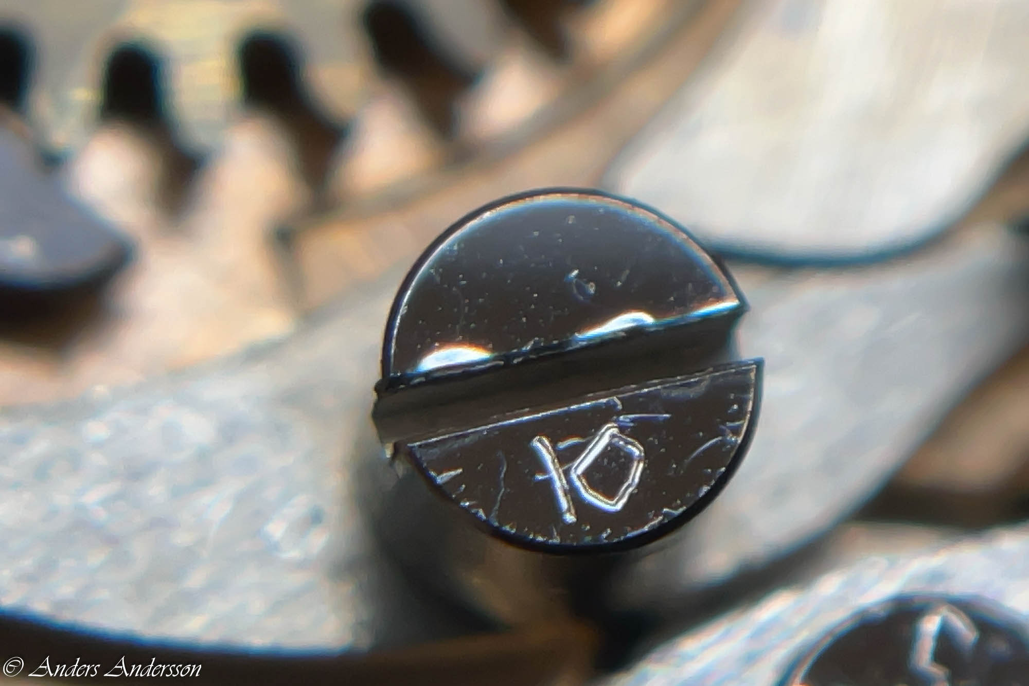 Ganska snart upptäckte jag att verket blivit utsatt för misshandel av en ”så kallad urmakare”. Jag upptäckte många fel och slitage, men även tidigare reparationer av någon med kunskap. På ovanstående bild ser man att hakstenen är flyttad uppåt parallellt med haken.