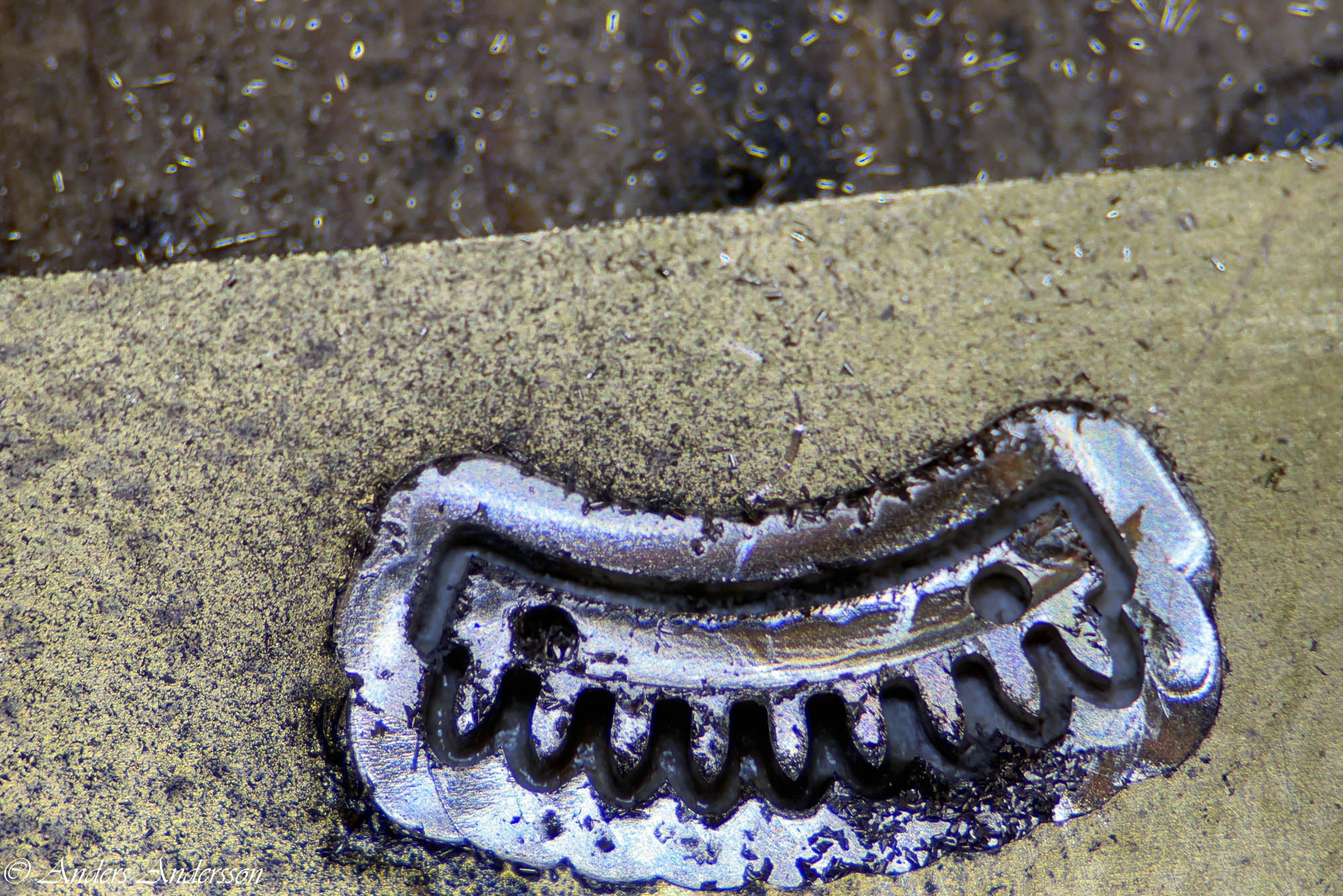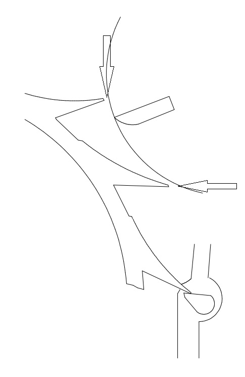 Här jag bockat slagarmen lite så att den verkar på återstoden av de slitna tandtopparna.