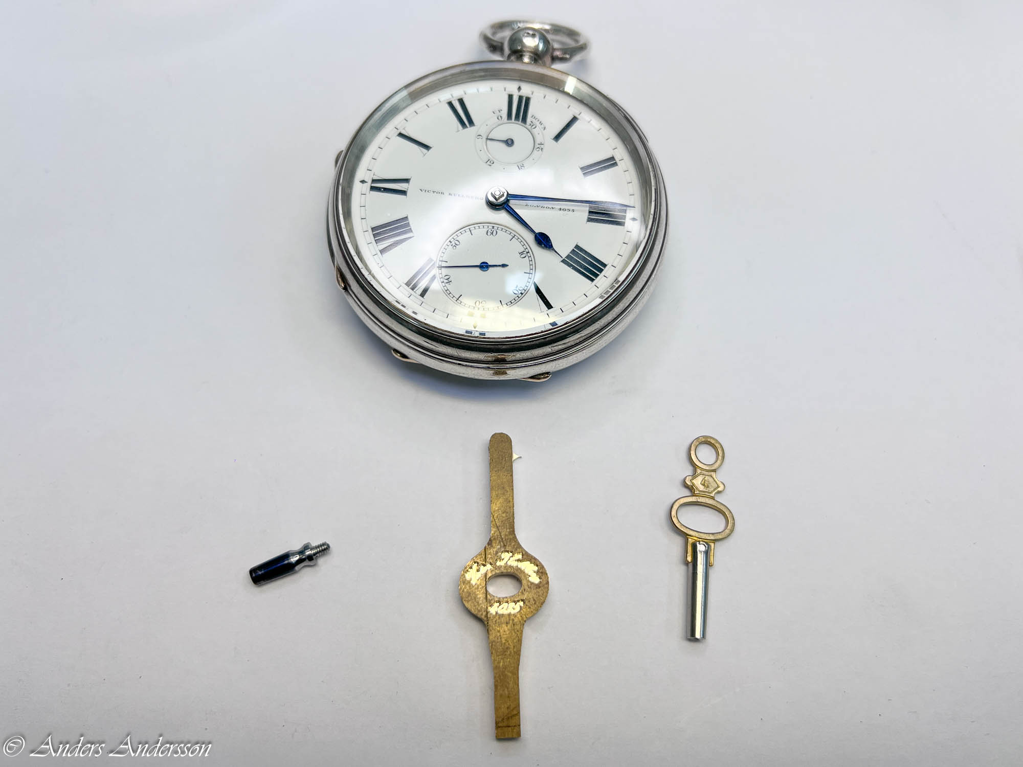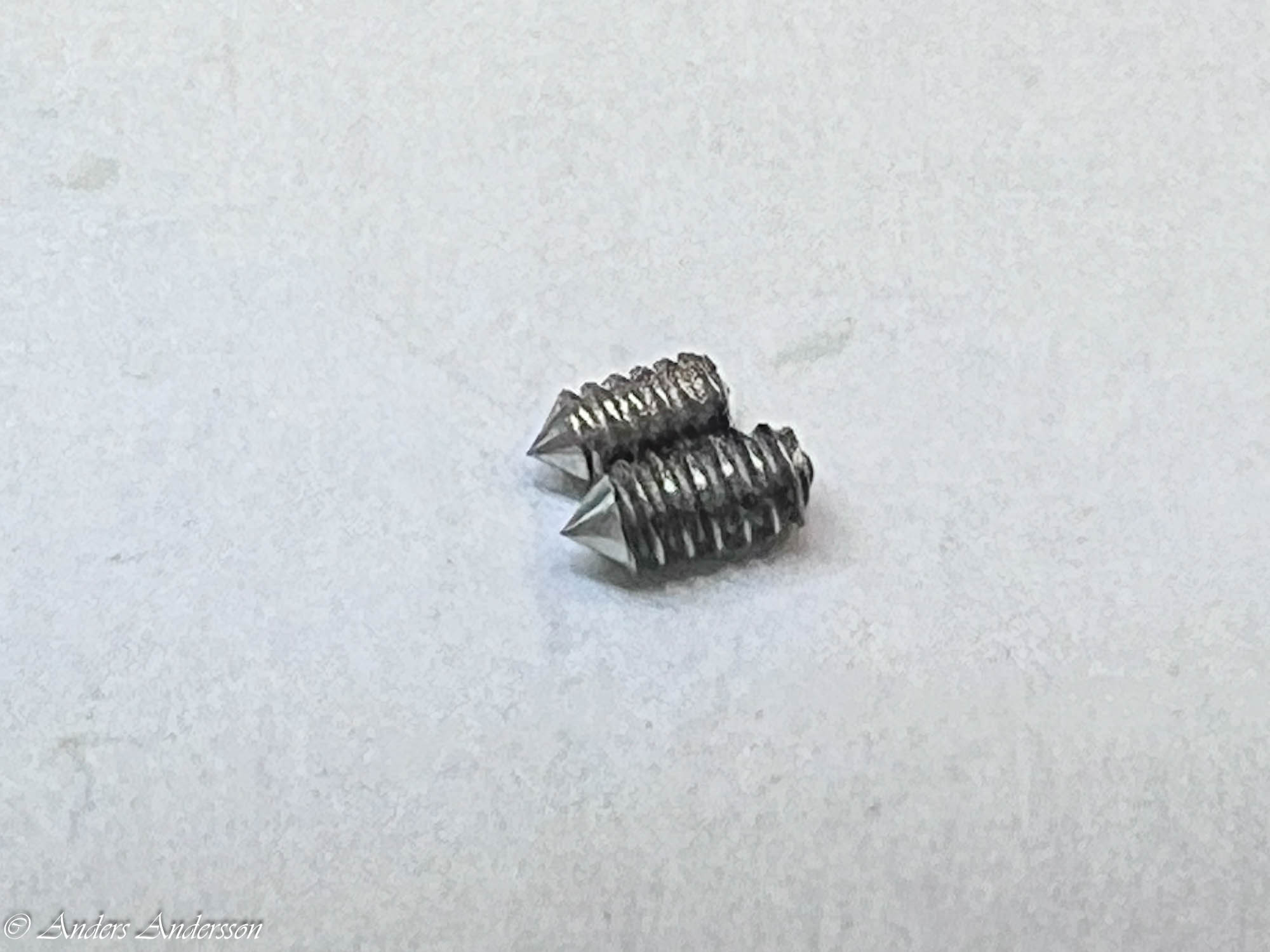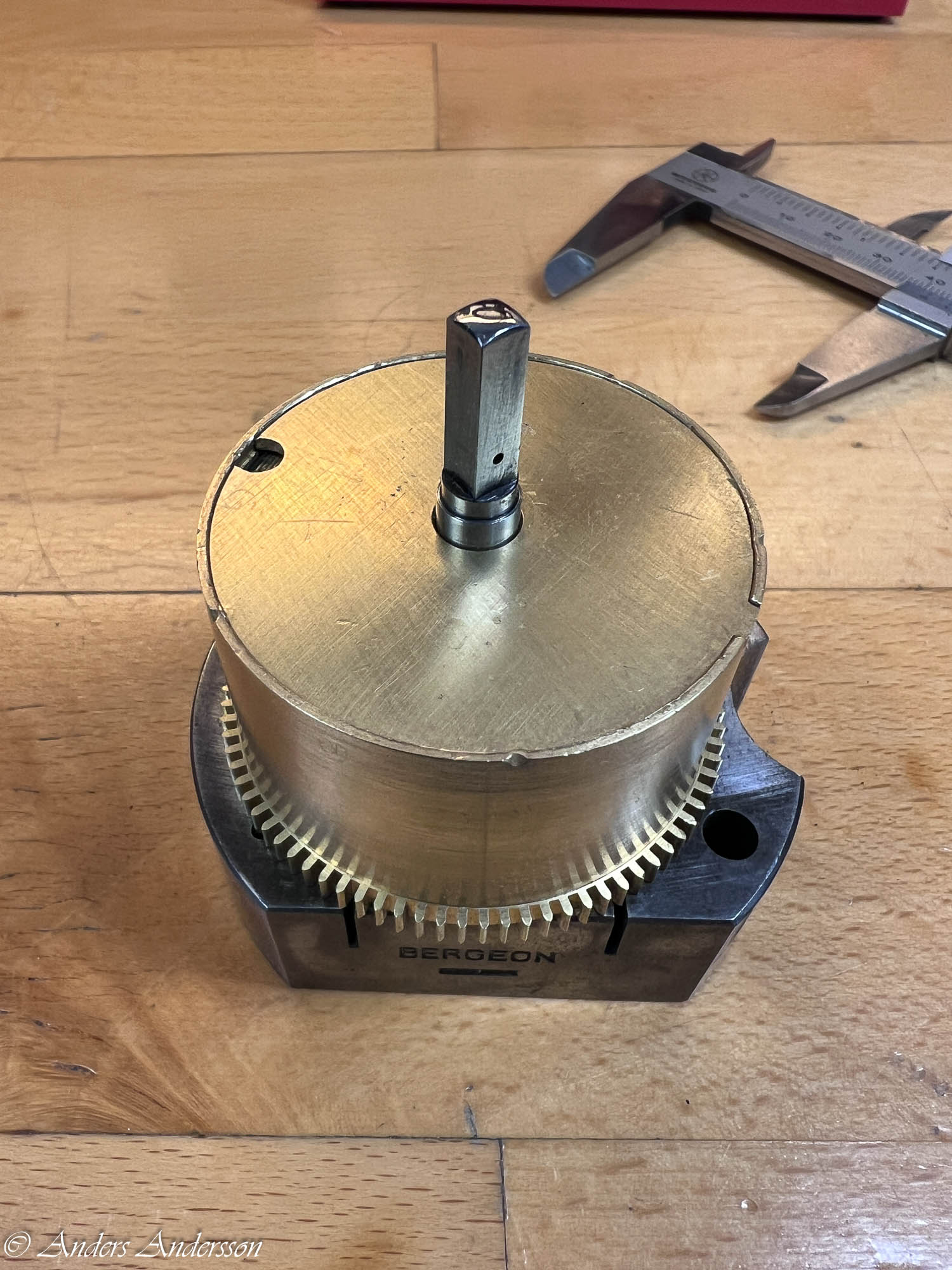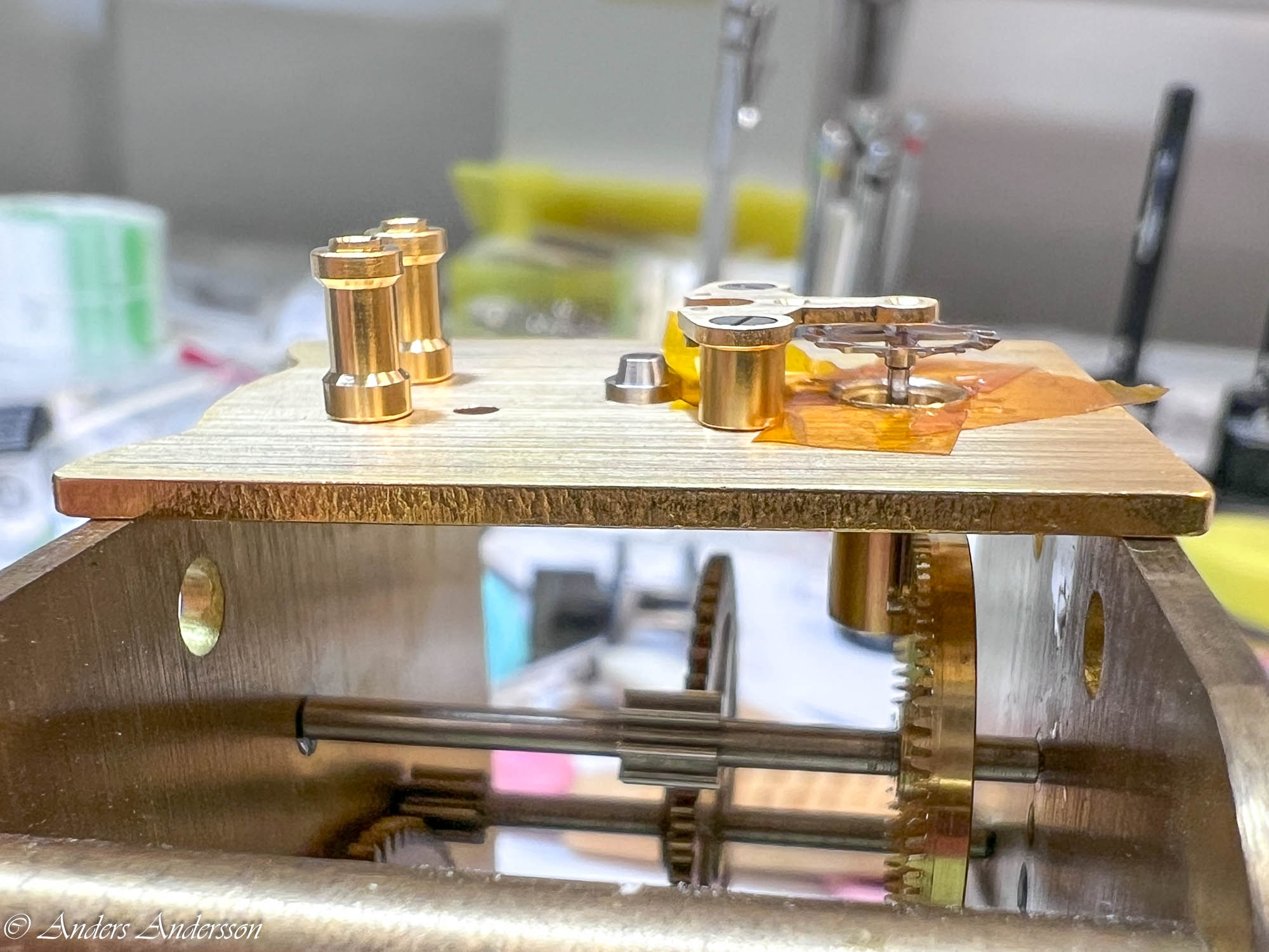 Uppenbarligen har reparatören inte förstått att axeln för visarväxelhjulet INTE är gängad utan inpressad. Inget är dock så skadat att det stoppar funktionen.