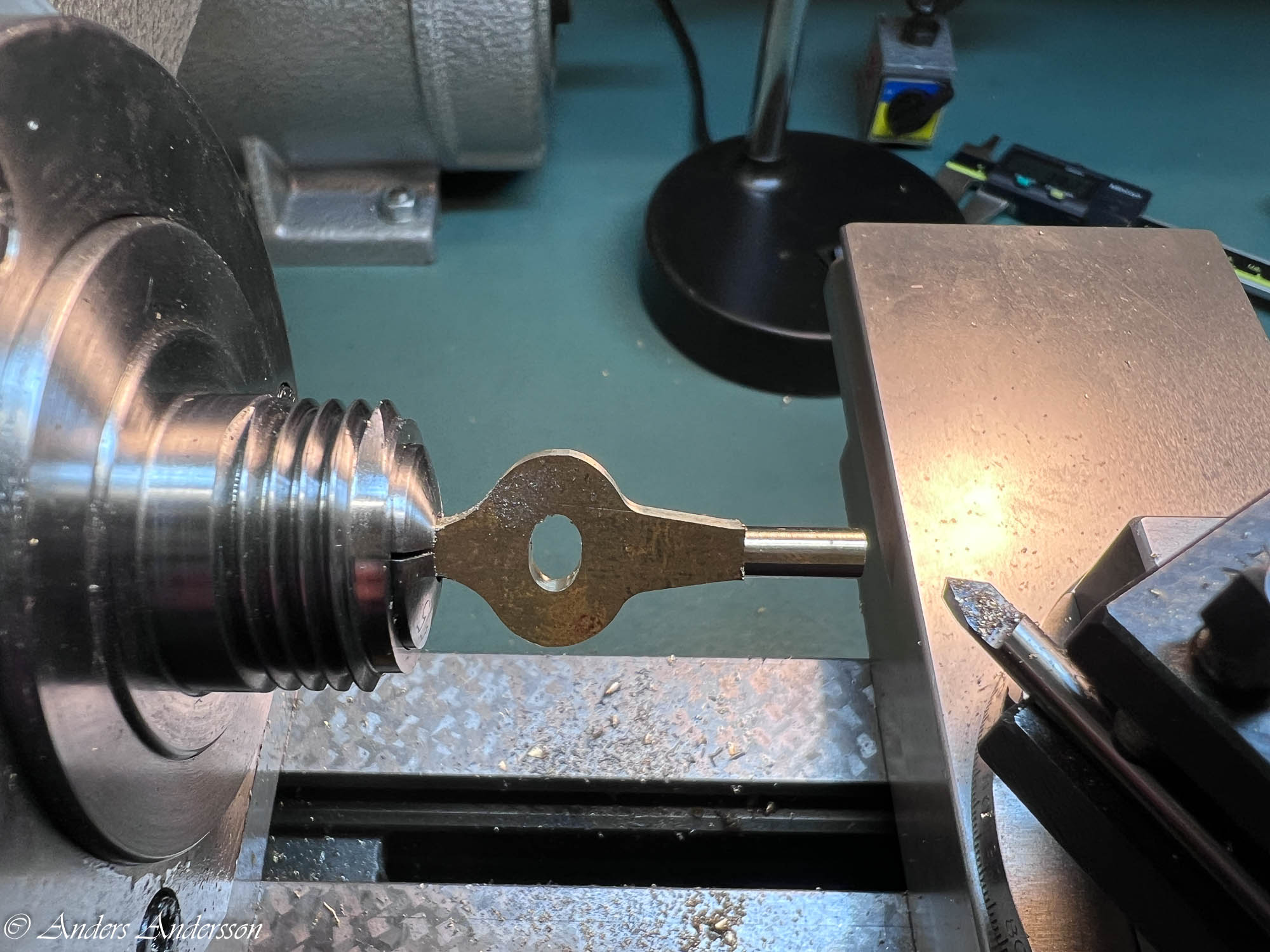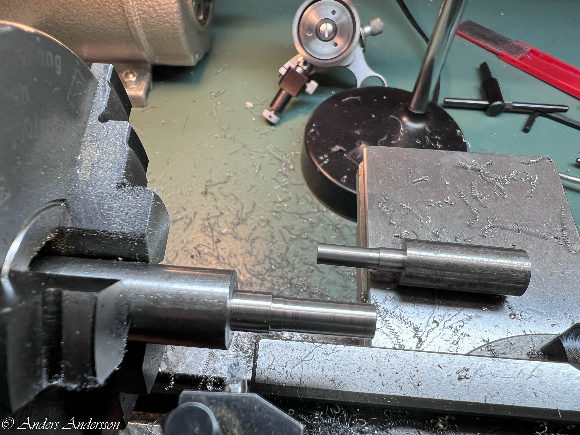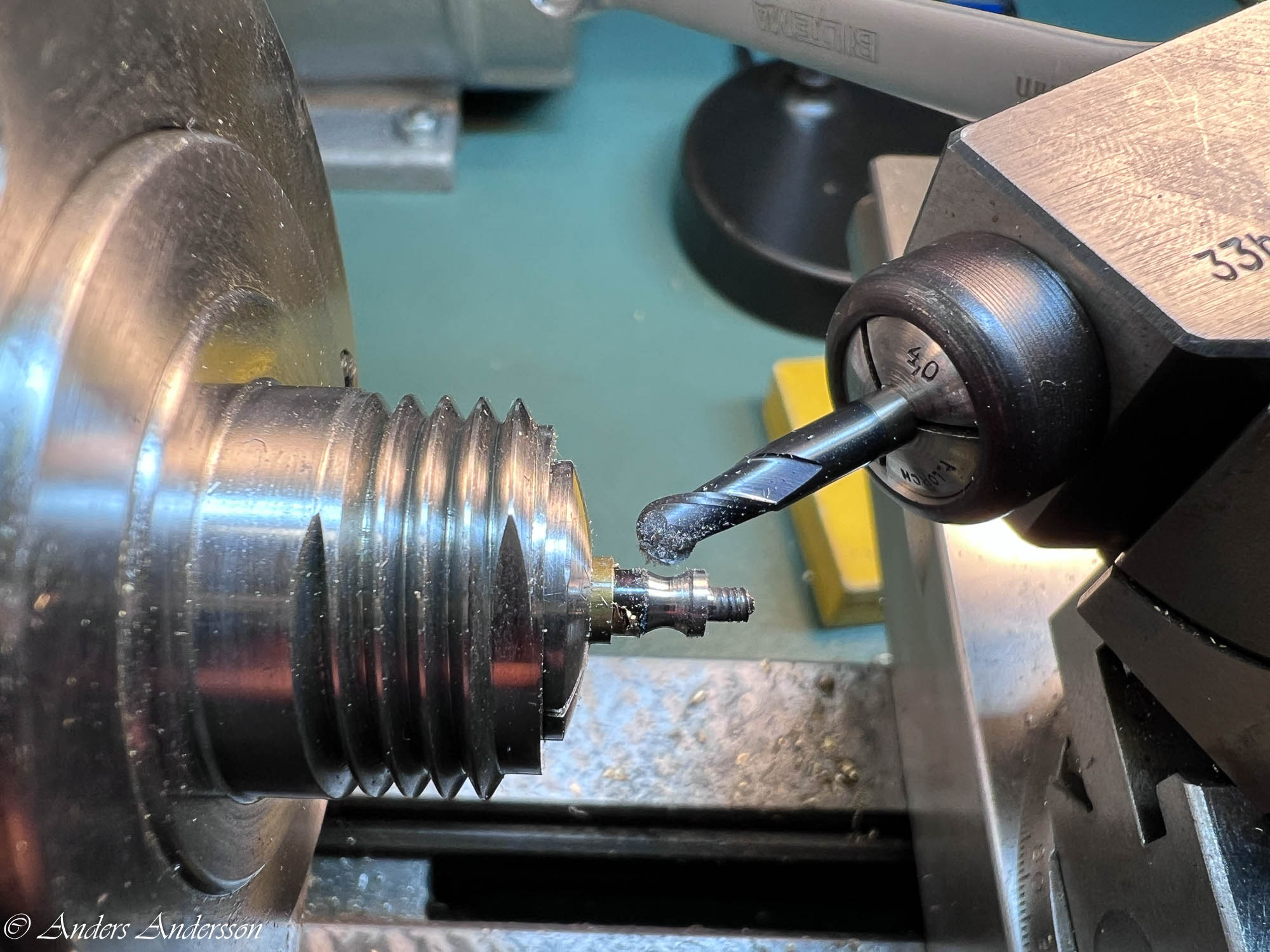 Fortsätter i svarven och riktar den böjda axeln.