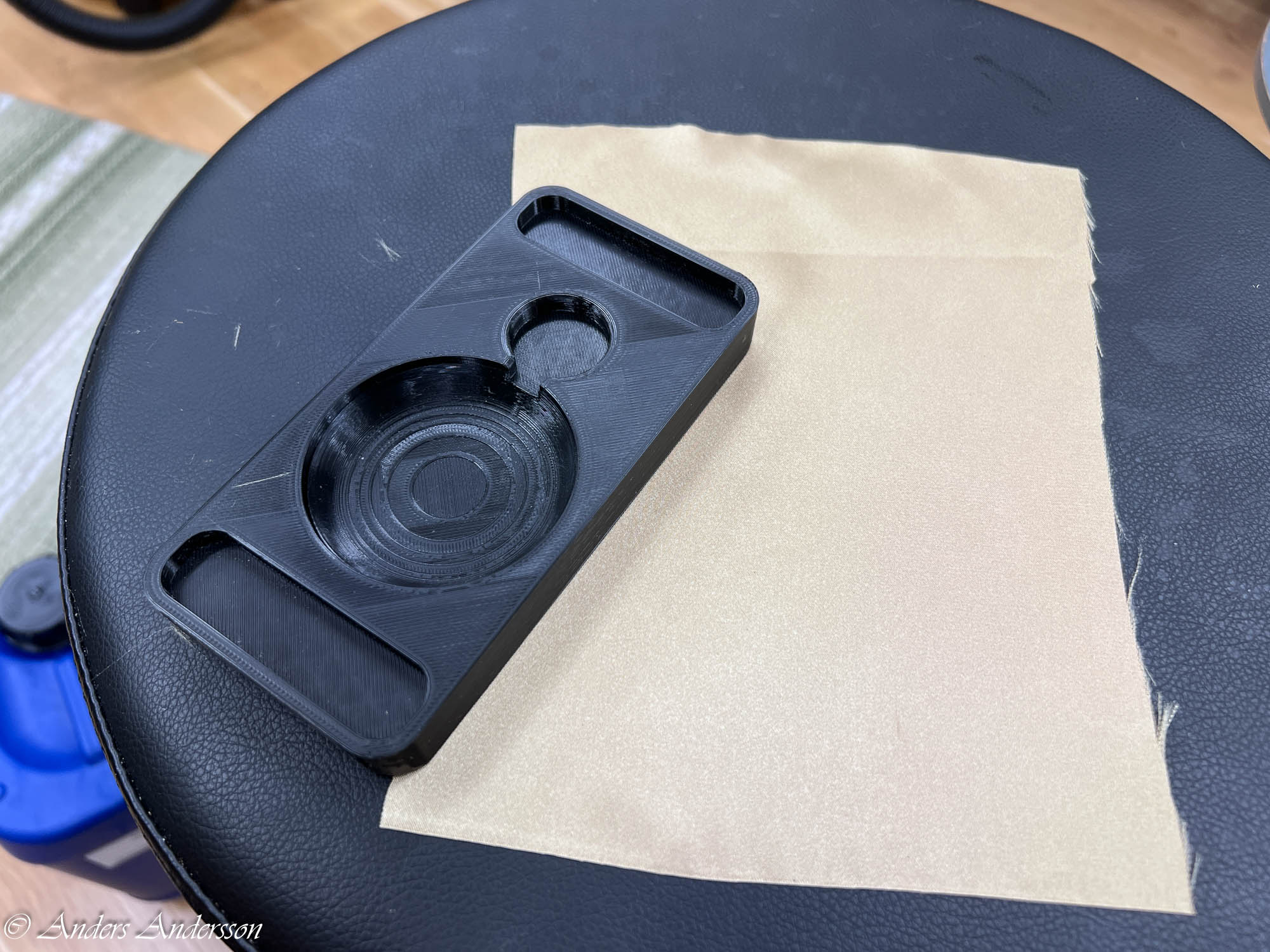 Jag började med att ta bort den avbrutna skruven för fodralets baksida/klangskålen.