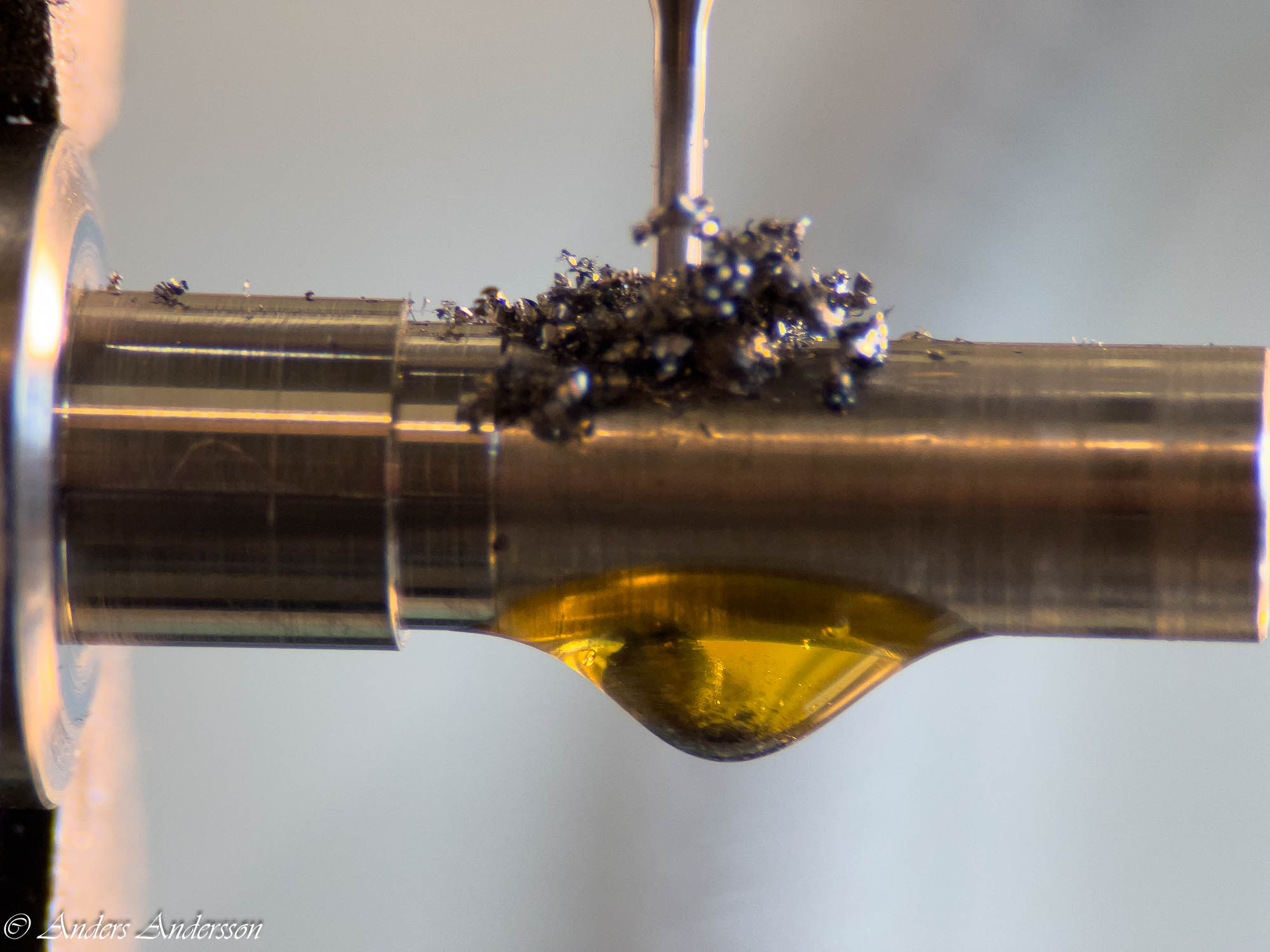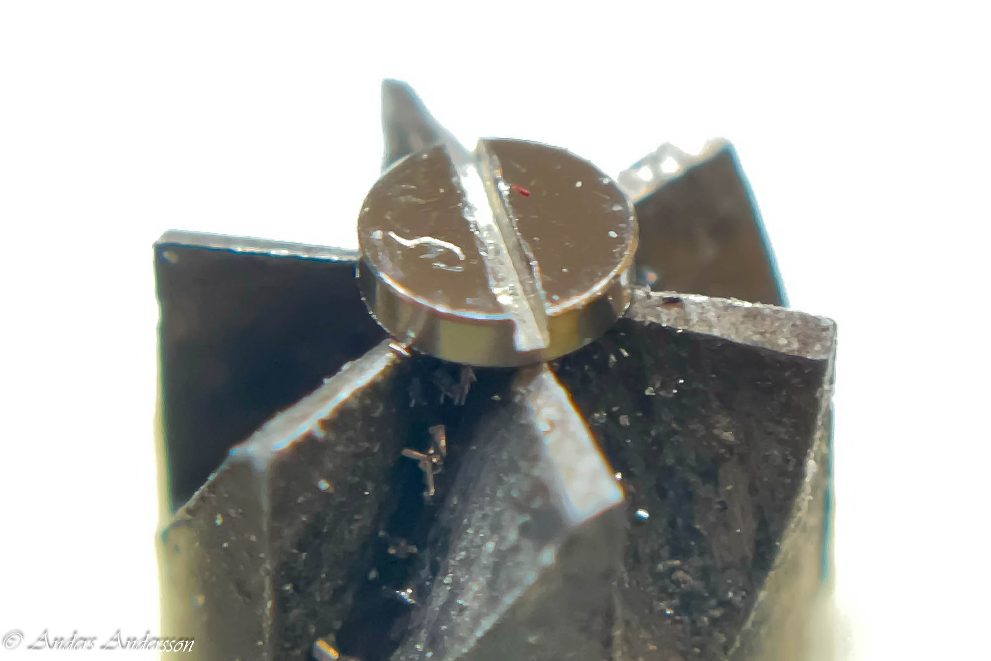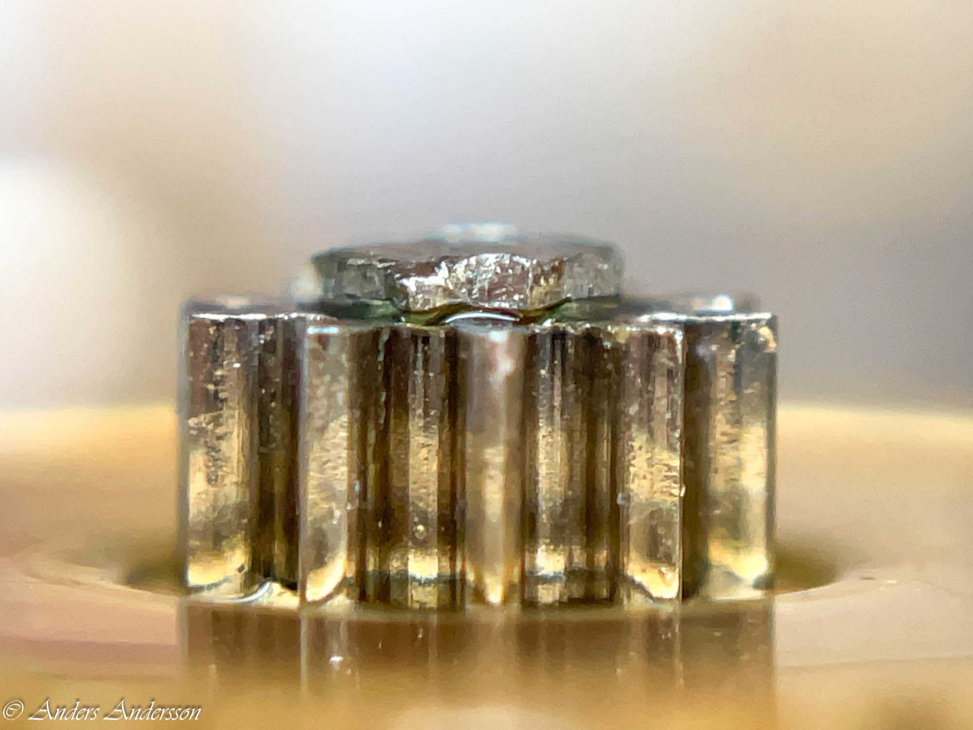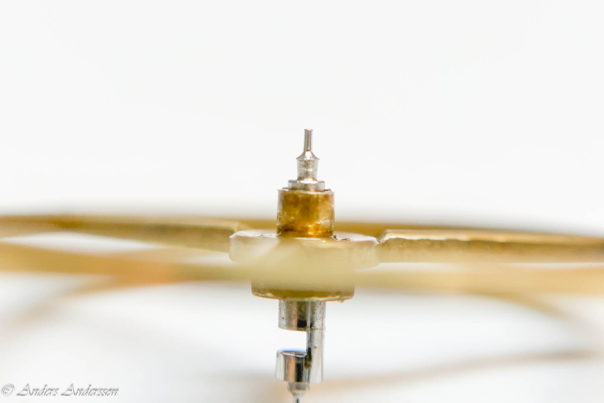 Antagligen den lösa motstenen som orsakat den krokiga tappen.