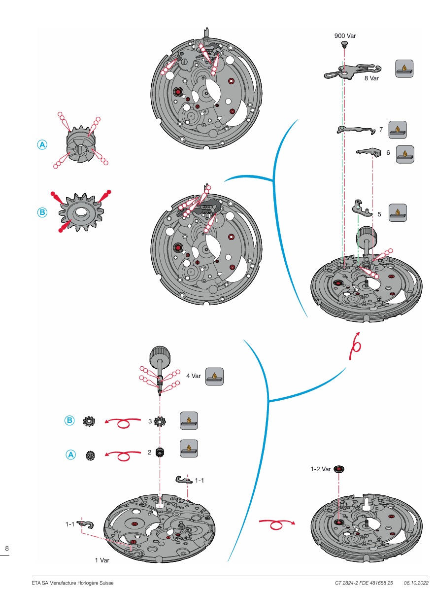 Det är meningen att man ska kunna ta ut fjäderhuset när det övriga verket fortfarande sitter ihop. Man ser märken i verkbotten efter fjäderhuskärnan när man försökt få ut fjäderhuset. När jag själv försökte få in/ut fjäderhuset kände jag att det här går alldeles för trögt, varför?