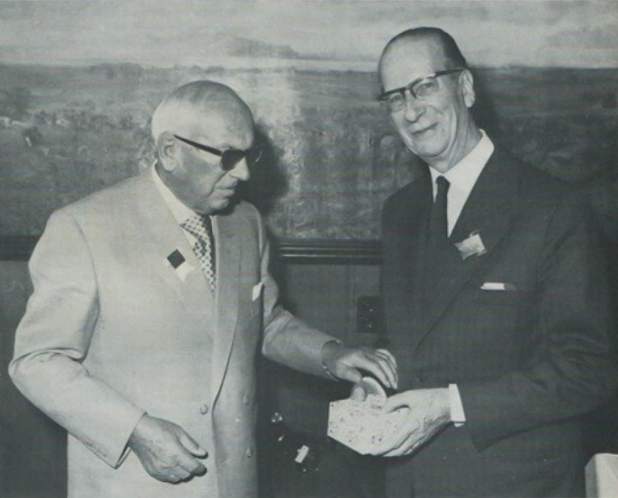 Här ser vi grundaren Arthur Imhof i sällskap med Gerard Bauer, ordförande för FH, under firandet av Imhofs 50-årsjubilieum.