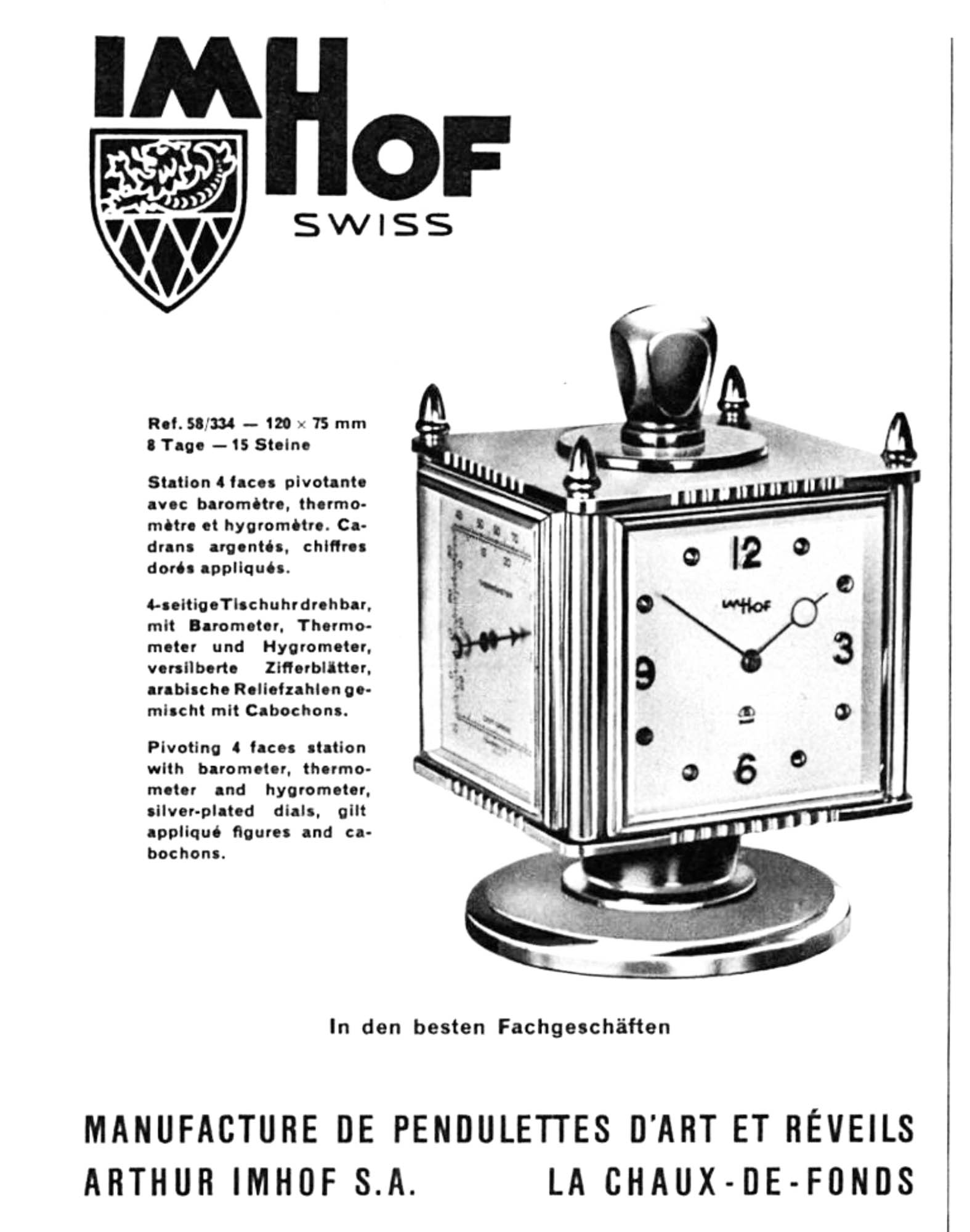 År 1924 grundade Arthur Imhof formellt Manufacture de Pendulettes d’Art Arthur Imhof S.A. i La Chaux-de-Fonds, Schweiz.