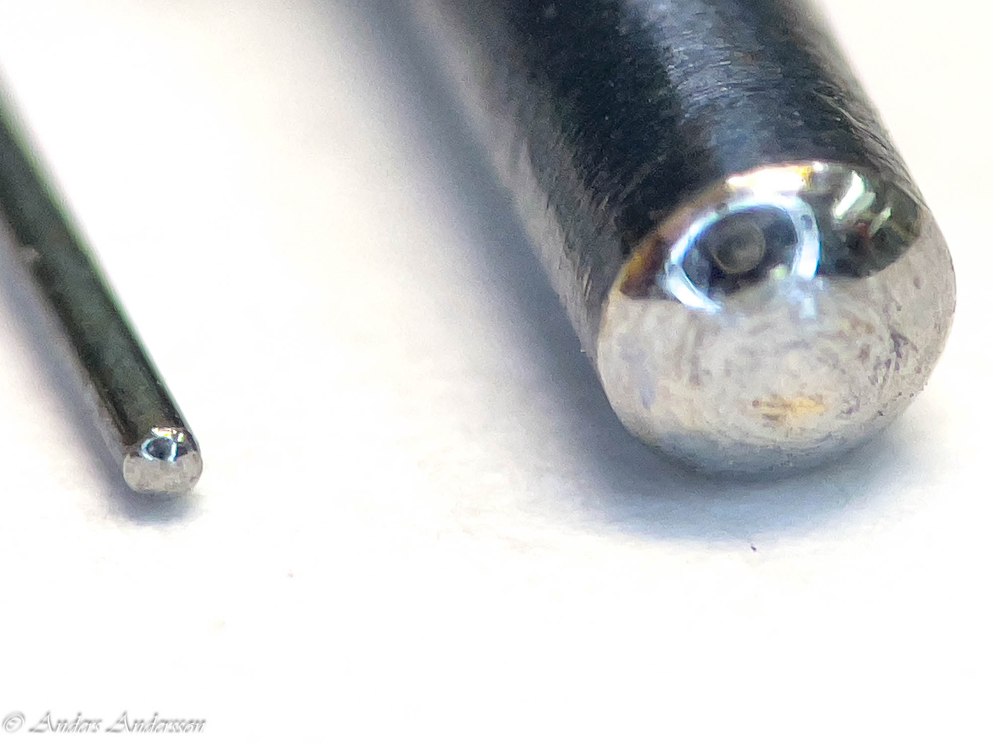 Man kan ana ett mörkt streck både inuti och på utsidan av cylindern, även ett litet slitage på hävytan.