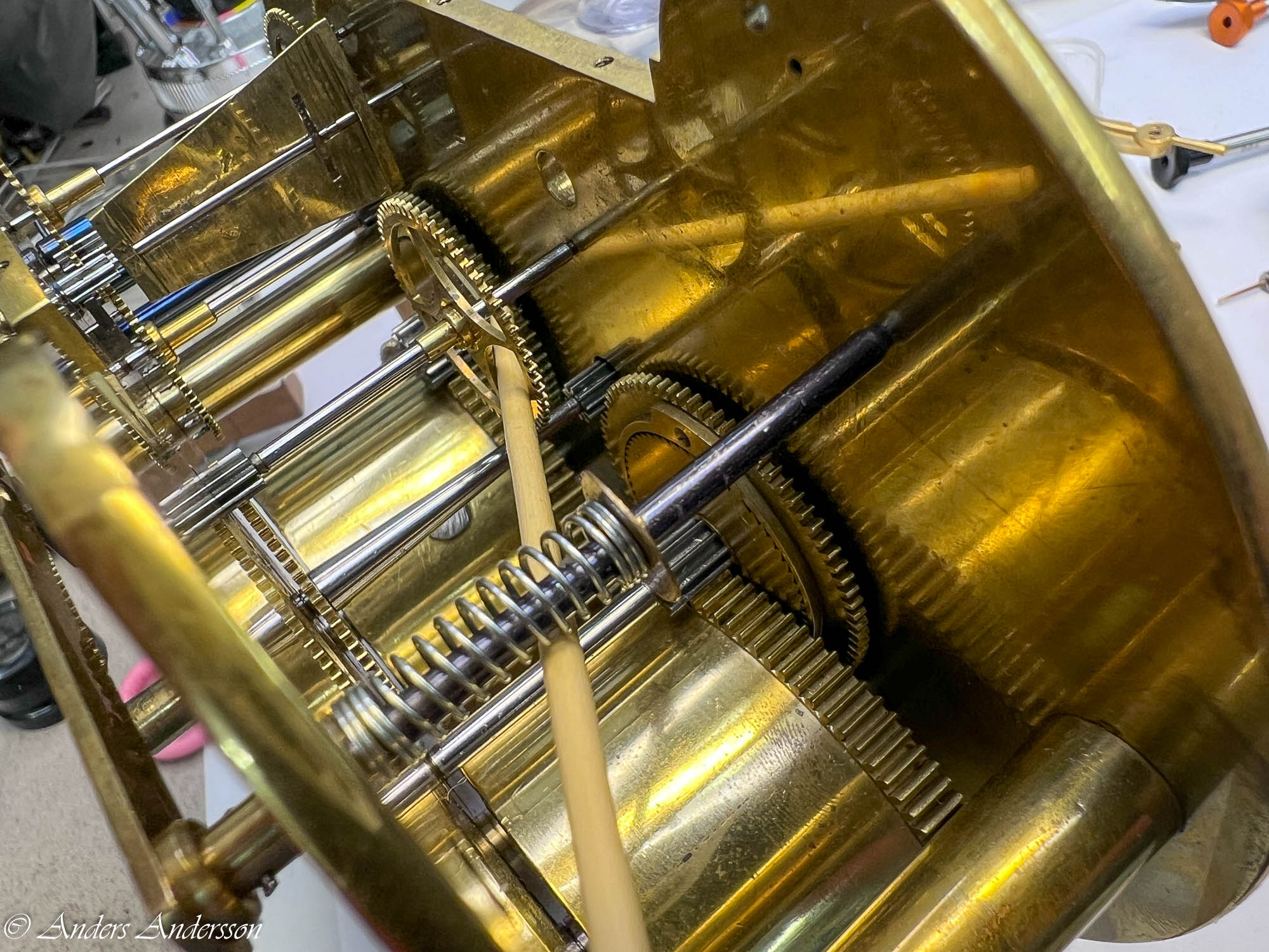 Kronhjulet rengjort och polerat. Alla lager injusterade.