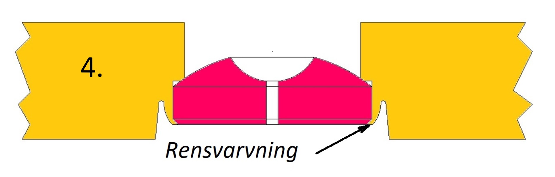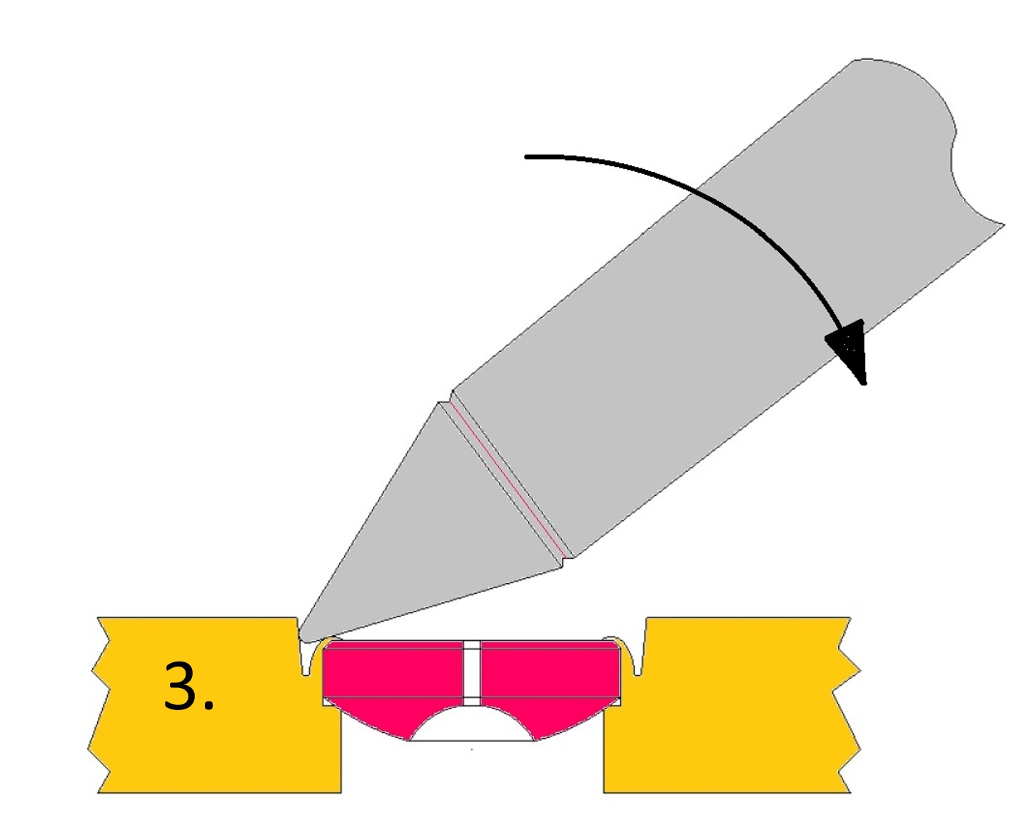 4. Överflödigt material svarvas bort till stenens plan. Med en fint polerad stickel snyggar man även till kanterna i insticket som lätt blir randiga under nedvikningen.