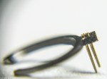 - Här använder du ruckstiftsböjaren. Tryck med den, stick in den mellan stiften för att böja och justera dem. Kanten ska vara vass, då kan trycka ner den ungefär som en knivsegg mot ruckarmen samtidigt som du vrider något – för att böja.