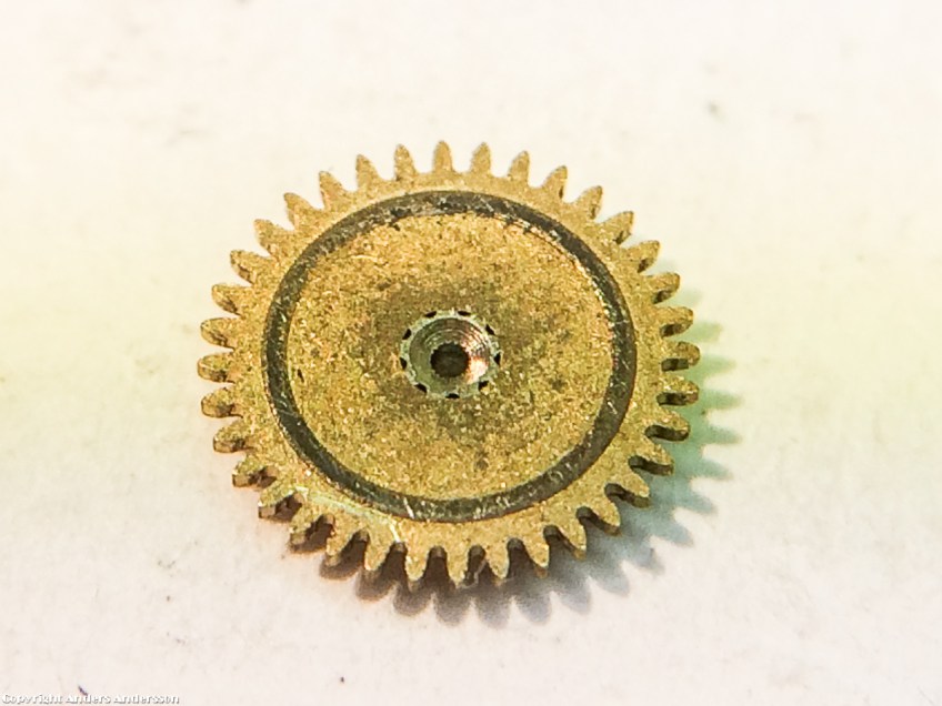 20150203-iPhone-0066 Publicerat 6 februari, 2015 kl. 1200 × 900 i Ulysse Nardin N 115 S Undersidan av visarväxelhjulet, polerat under renoveringen.