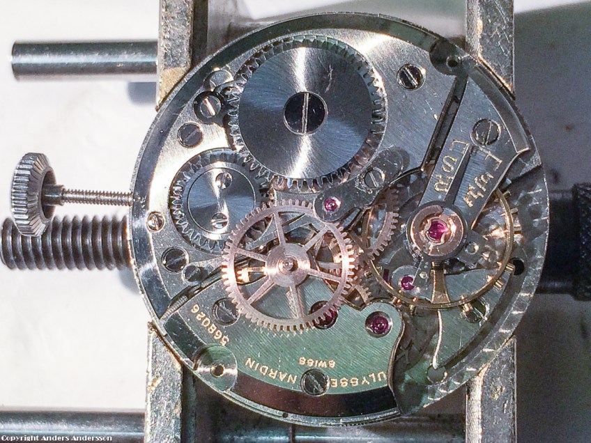 20150203-iPhone-0124 Publicerat 6 februari, 2015 kl. 1200 × 900 i Ulysse Nardin N 115 S Verket efter renovering. Nr 568026.