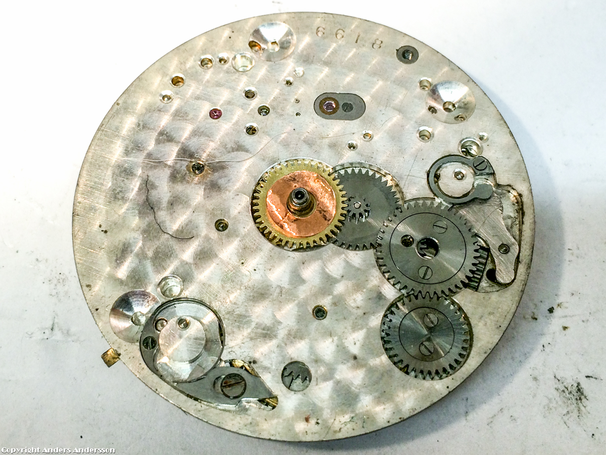 20150529-iPhone-0278 Publicerat 3 juli, 2015 kl. 1200 × 900 i Zenith chronograph 19”’ – del 1 Också ovanlig konstruktion. Spärrhjulet ligger på undersidan av fjäderhuset – kronhjulet och spärren på tavelsidan