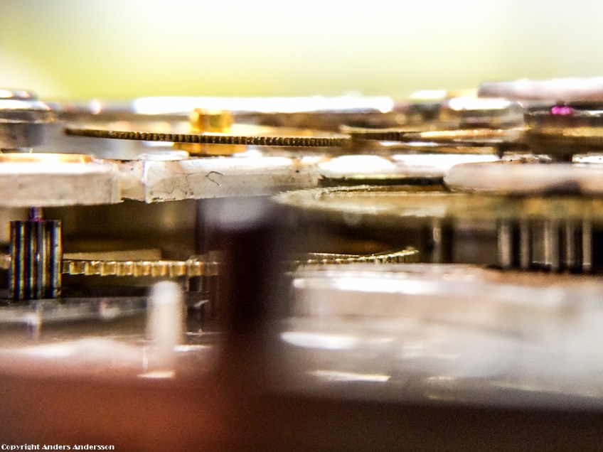 20150601-iPhone-0319 Publicerat 3 juli, 2015 kl. 1200 × 900 i Zenith chronograph 19”’ – del 1 Drivhjulet för kronografen hamnar på snedden. Det visade sig att hjulet delas satt snett på sin puts samt att någon satt i en fodring snett. Dålig kombo!