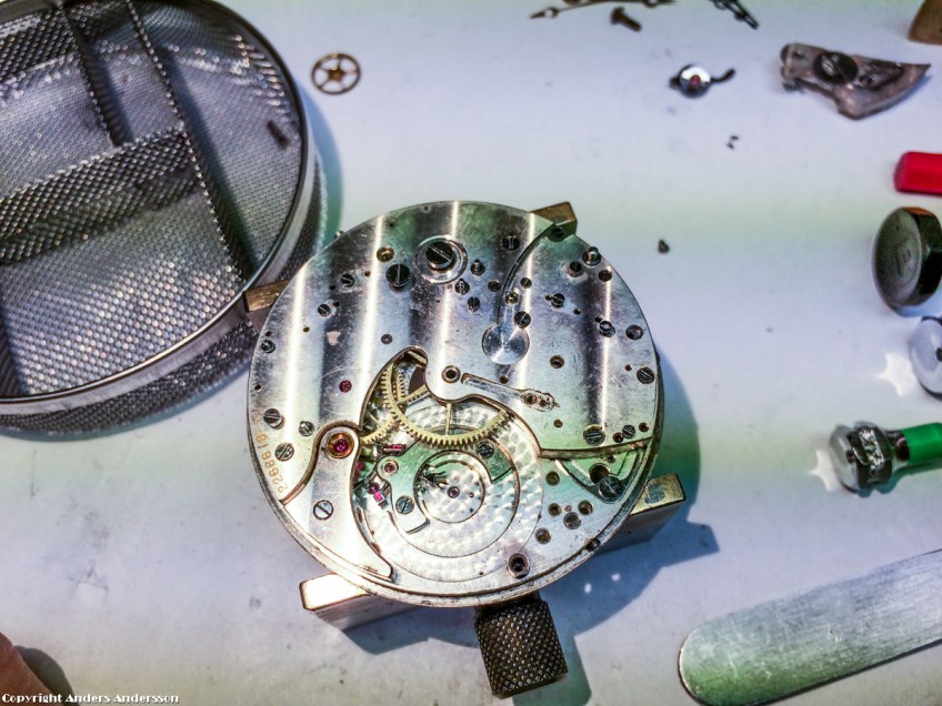 20150601-iPhone-0440 Publicerat 3 juli, 2015 kl. 1200 × 900 i Zenith chronograph 19”’ – del 1 Får sätta ihop verket igen och prova ingreppen – det verkar som om det funkar trots allt.