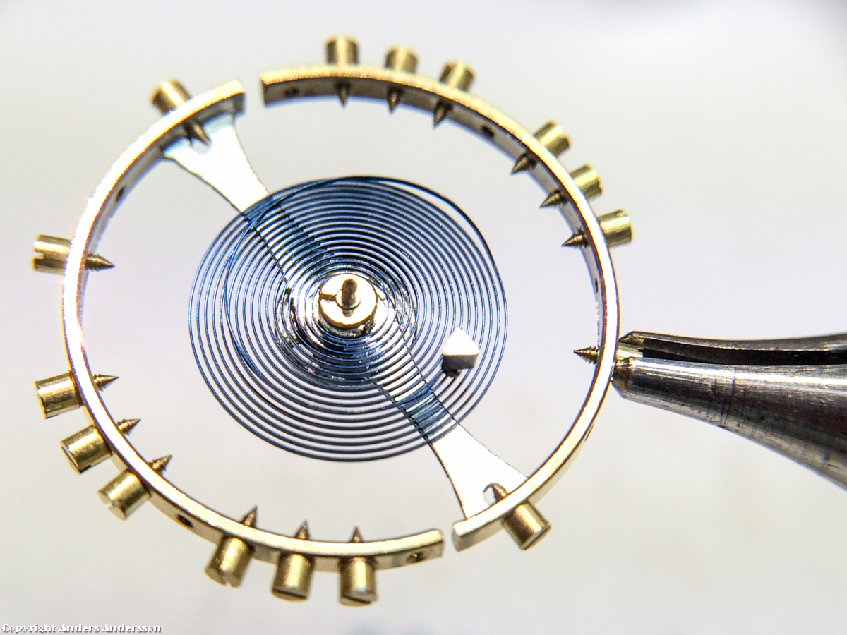 Skruven sitter fast. Jag väljer skruven så långt ifrån den slitsade delen som möjligt. Man gör det för att bimetallbalansen kompenserar mer ju mer vikt som adderas till ytterdelen. Det blir således minst kompensationseffekt vid värmeförändringar så här.