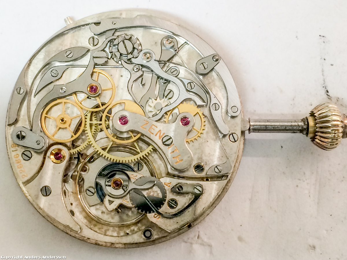 20150602-iPhone-0490 Publicerat 3 juli, 2015 kl. 1200 × 900 i Zenith chronograph 19”’ – del 1 Verket ihopsatt och klart! Skruvar polerade, armar slipade, verket renoverat och rengjort – ser bra ut.