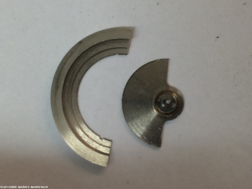 20150904-iPhone-0043 Publicerat 10 september, 2015 kl. 1200 × 900 i Erics DuBoisklocka med lös rotorvikt Lossade rotorn, oxid hade bildats i spåren där vikten skulle fästas. Rengjorde varsamt med en krats.