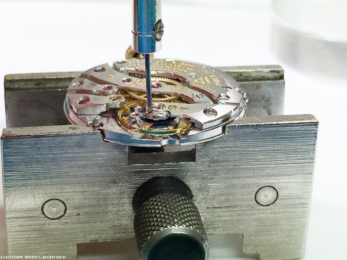 20151020-iPhone-0219 Publicerat 8 november, 2015 kl. 1200 × 900 i Patek Philippe 23-300PM Skruvarna för stolpen dras åt. Kontroll av centreringen.