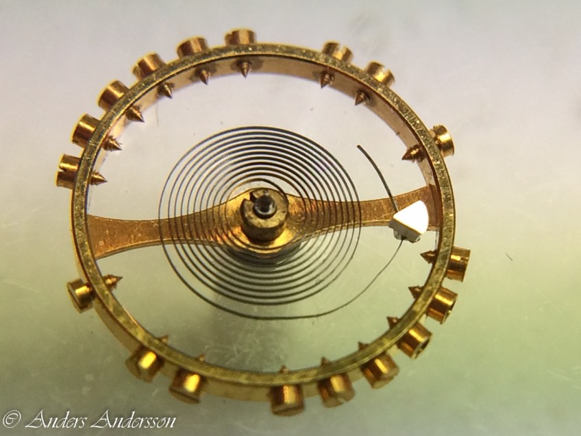 20170124-iphone-0326 Publicerat 28 januari, 2017 kl. 1200 × 900 i Longines cal 22A Nu återstår att rikta yttervarvet. Notera breugetkurvan! Så kallad innerkurva, ganska ovanligt.