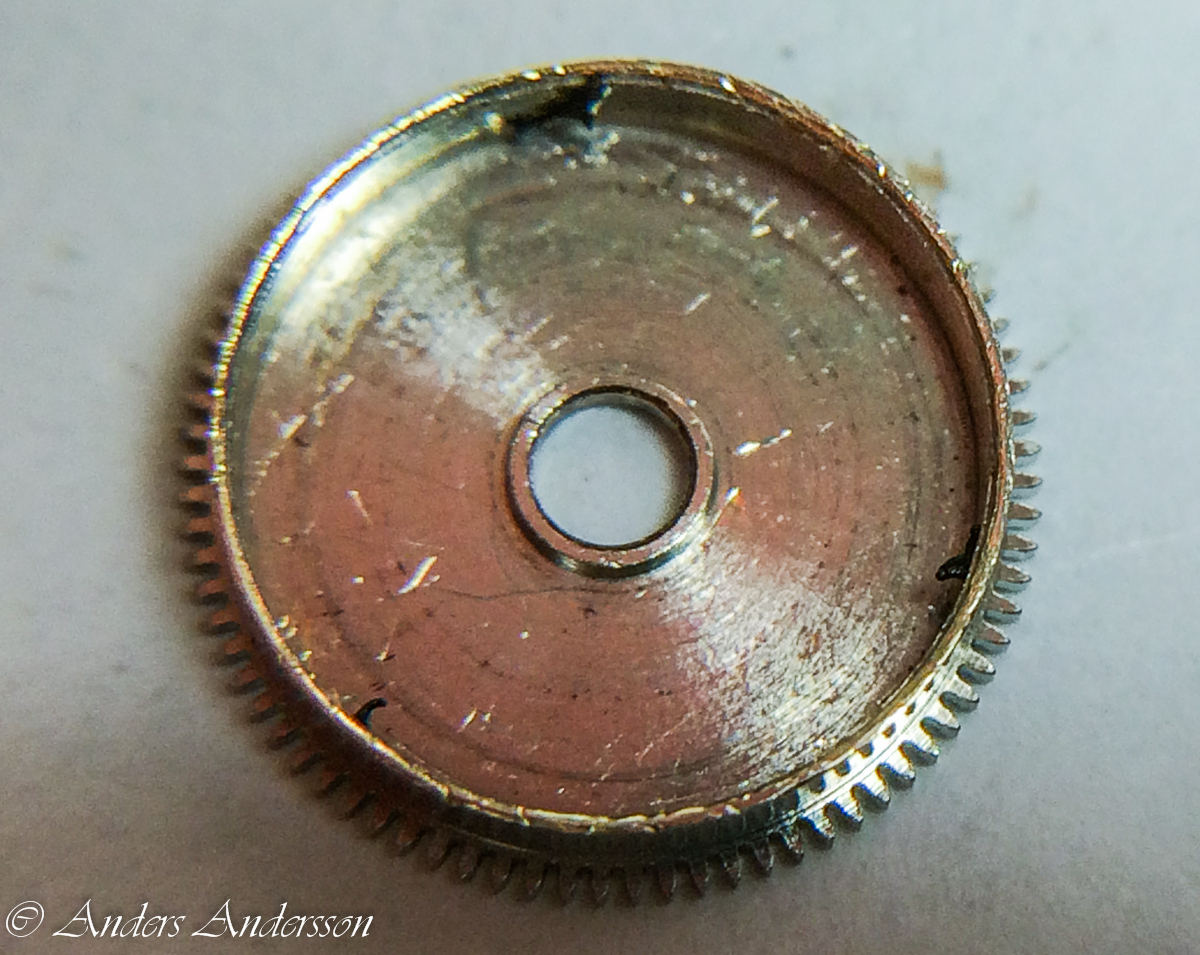 20170127-iphone-0136 Publicerat 28 januari, 2017 kl. 1200 × 955 i Longines cal 22A Ett segt fett appliceras med tre duttar på fjäderhusets vägg, detta för att släpfjädern skall glida fint mjukt och fint samt lagomt trögt. Någon annan smörjning av fjädern behöve inte eftersom de rostfria fjädrarna är självsmörjande.