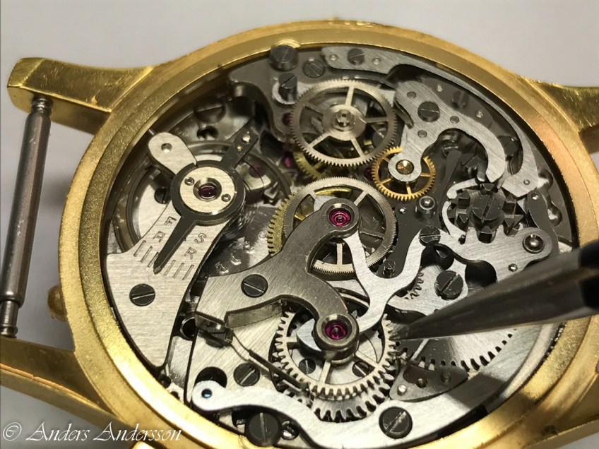 20170907-iPhone-0191 Publicerat 9 september, 2017 kl. 1200 × 900 i Angelus Chronodate cal 217. Tryck in knappen för nollställningen samtidigt som du känner om minut- och sekundräknarnas hjul är blockerade.