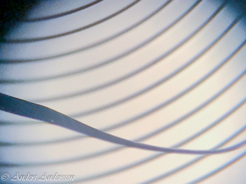 20171013-iPhone7-0341 Publicerat 22 oktober, 2017 kl. 1200 × 900 i Movado cal 375 – med spiralproblem. En bild från mikroskopet för att illustrera hur illa spiralen blivit vriden.
