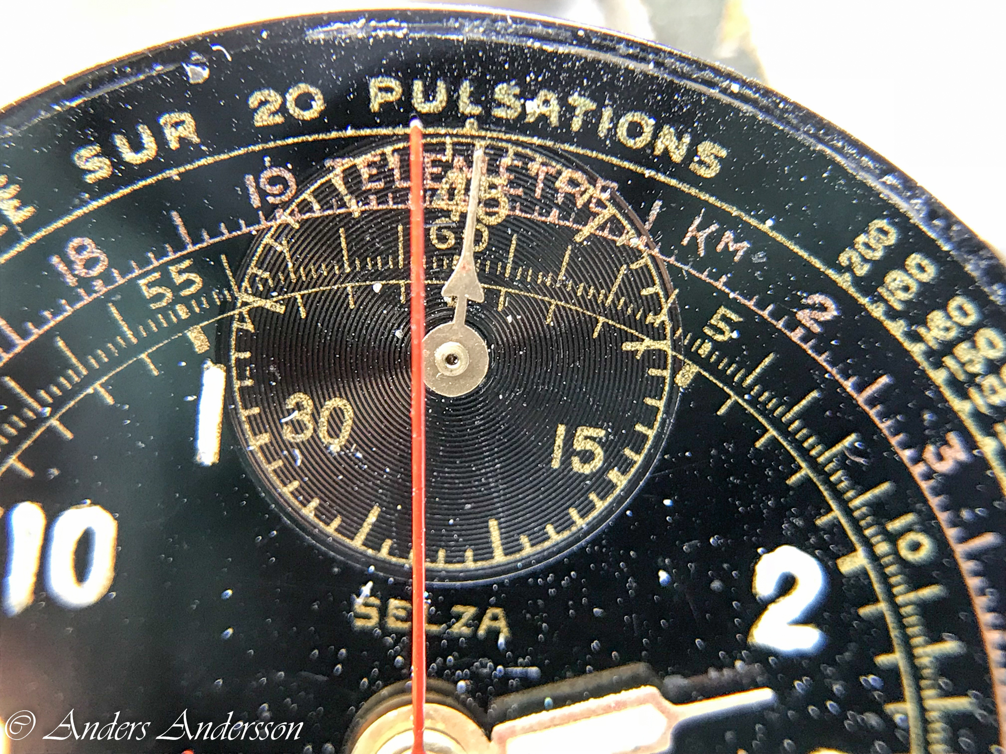 20180821-iPhone-0037 Publicerat 27 oktober, 2018 kl. 2000 × 1500 i Selza en kronograf med Venus 170-verk Skalor för puls- och avstånds-mätning. Se texten.