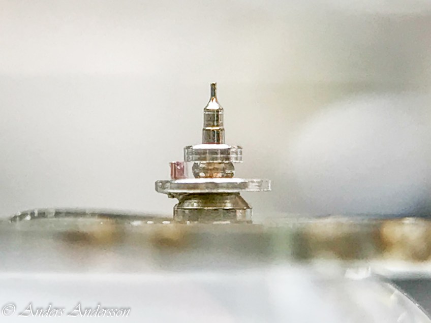 20180828-iPhone-0215 Publicerat 27 oktober, 2018 kl. 2000 × 1500 i Selza en kronograf med Venus 170-verk Krokig undre balanstapp. Liverrullen ihoptryckt och förstörd. Se den rundade delen mellan undre & övre delen.