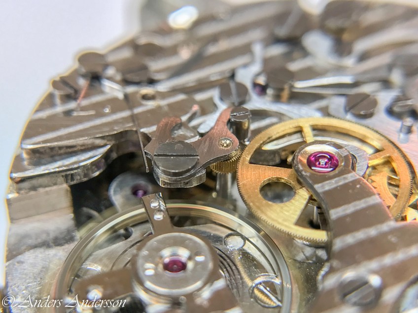 20180828-iPhone-0240 Publicerat 27 oktober, 2018 kl. 2000 × 1500 i Selza en kronograf med Venus 170-verk Ingreppet mellan kopplingshjulet och centrumsekundhjulet skall ställas in.