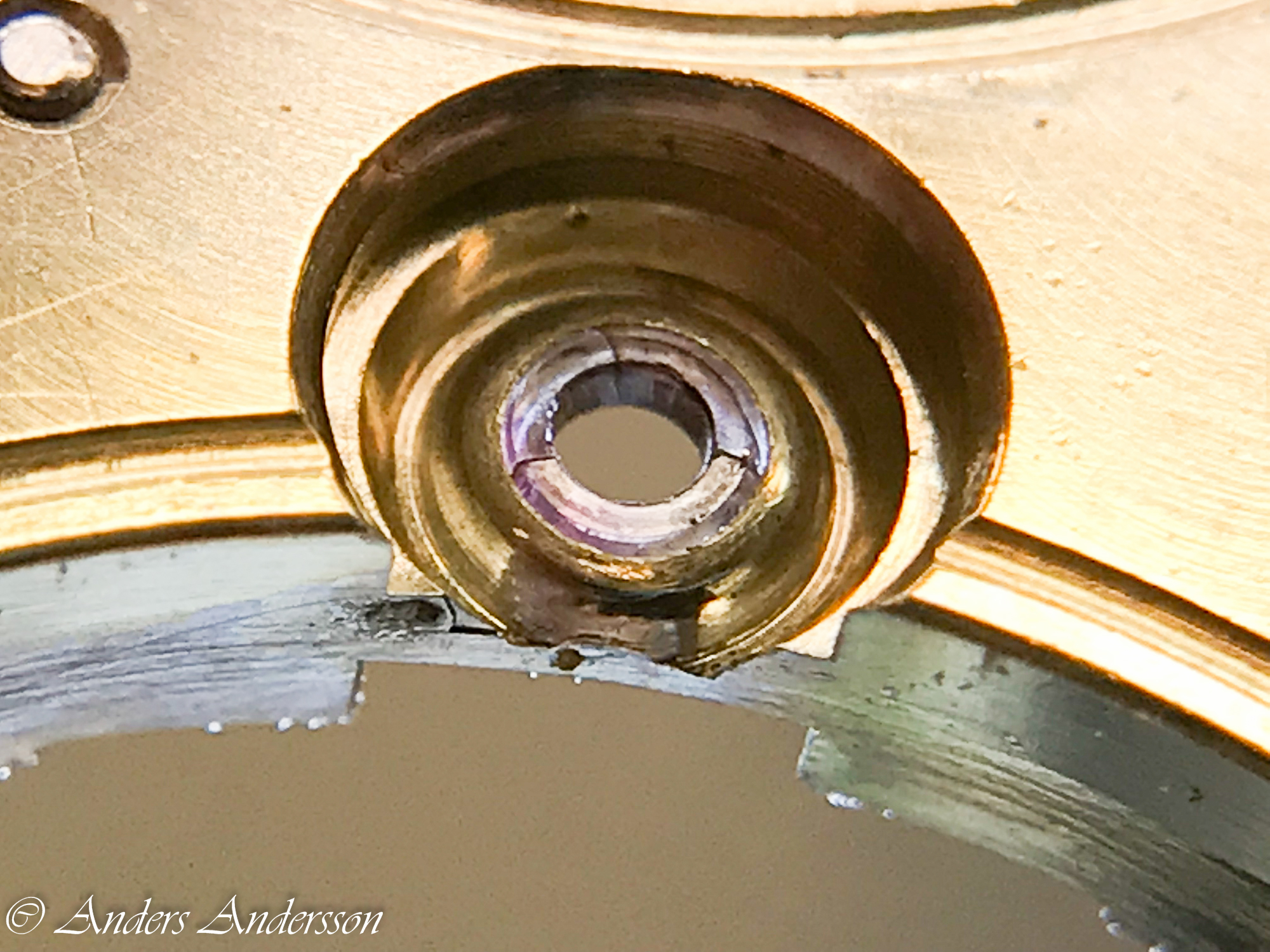 20181110-iPhone-0095 Publicerat 14 november, 2018 kl. 2000 × 1500 i Borel & Courvoisier 53629 Centrumstenen spräckt. Letade efter en passande fattningssten, men hade ingen. Hade ingen modern sten heller, alternativet skulle vara att svarva en fodring i mässing. Jag valde att inte göra någonting.
