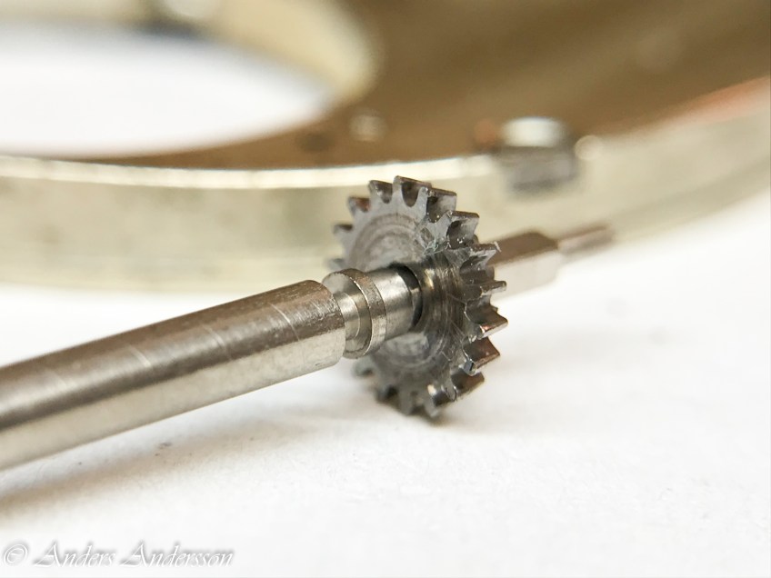 20181110-iPhone-0105 Publicerat 14 november, 2018 kl. 2000 × 1500 i Borel & Courvoisier 53629 Transmissionshjulet passar precis över fyrkanten, men inte på den dela av axeln där den ska passa. Inga problem, bara att svarva lite.