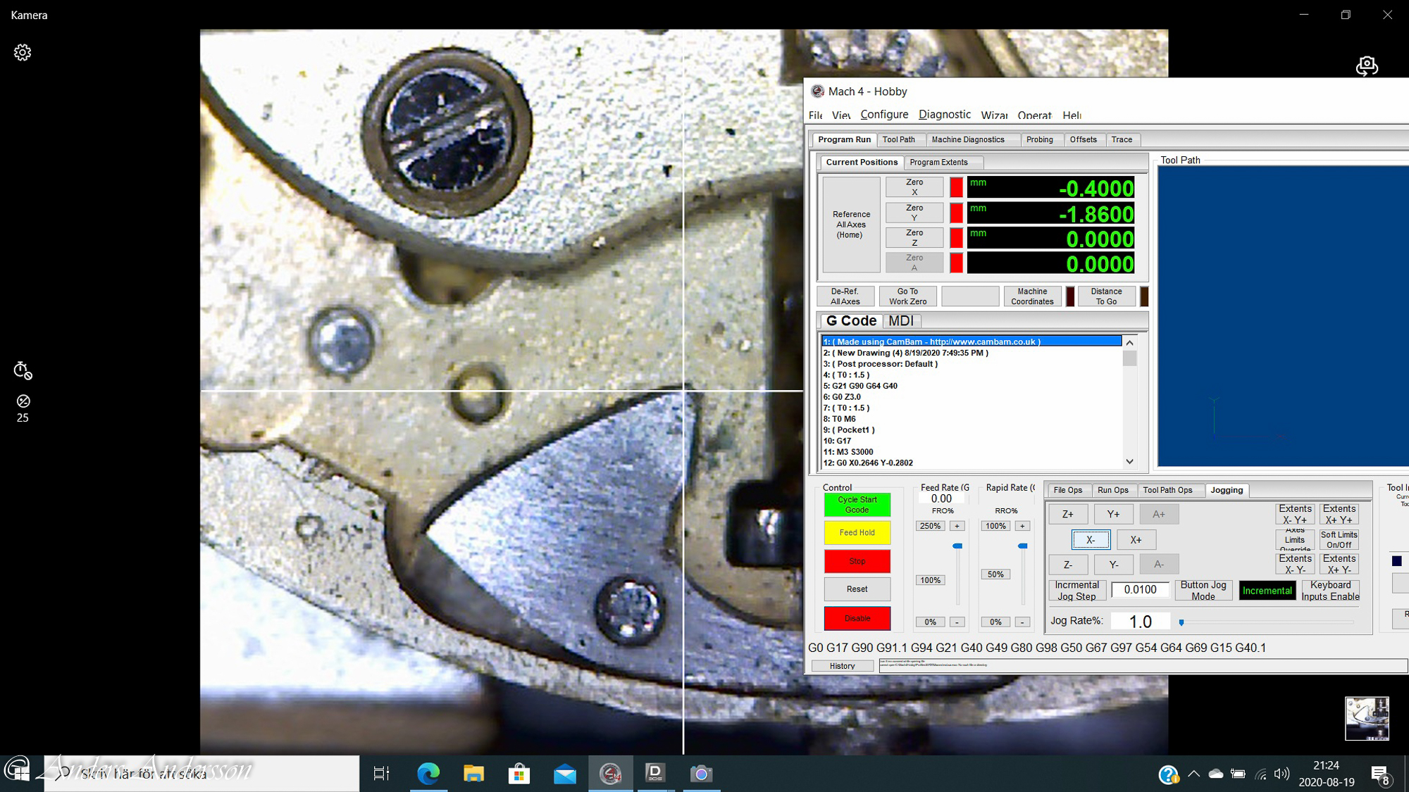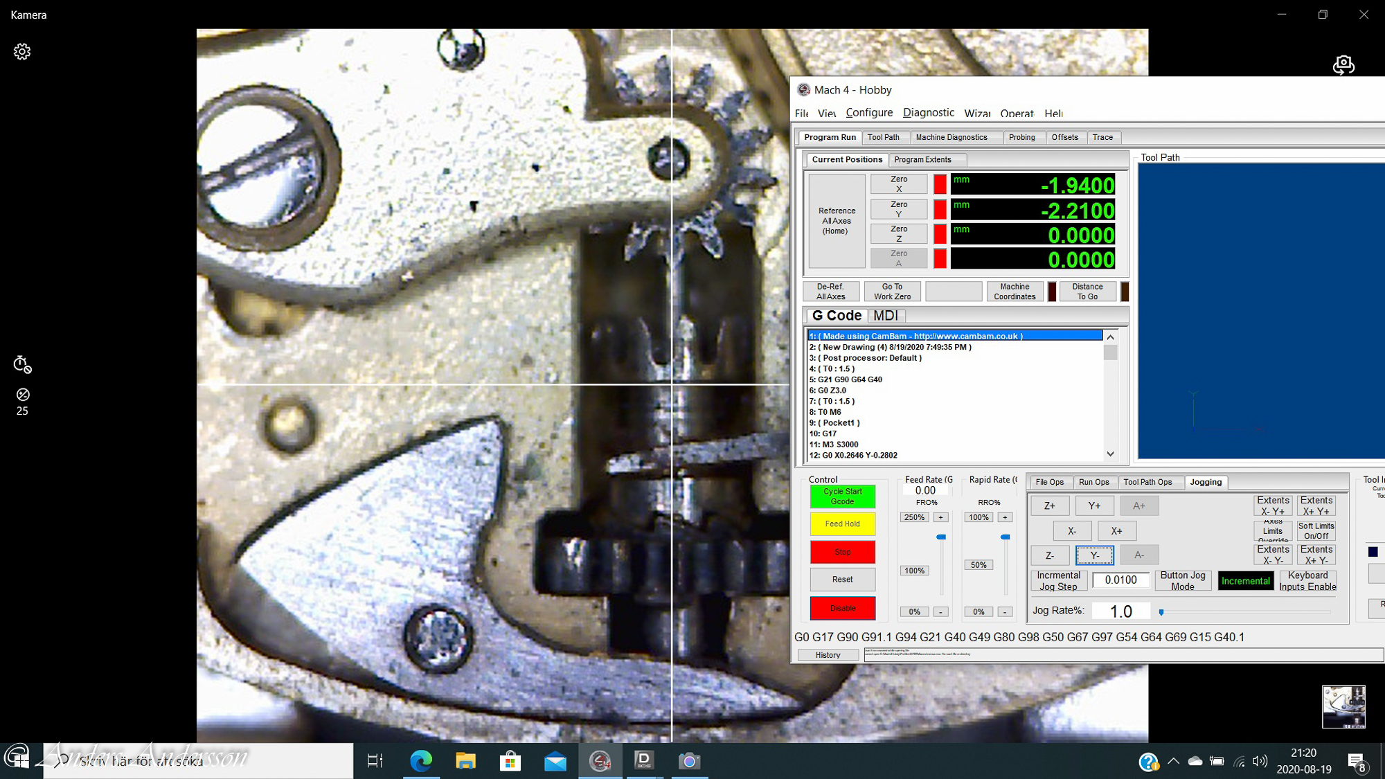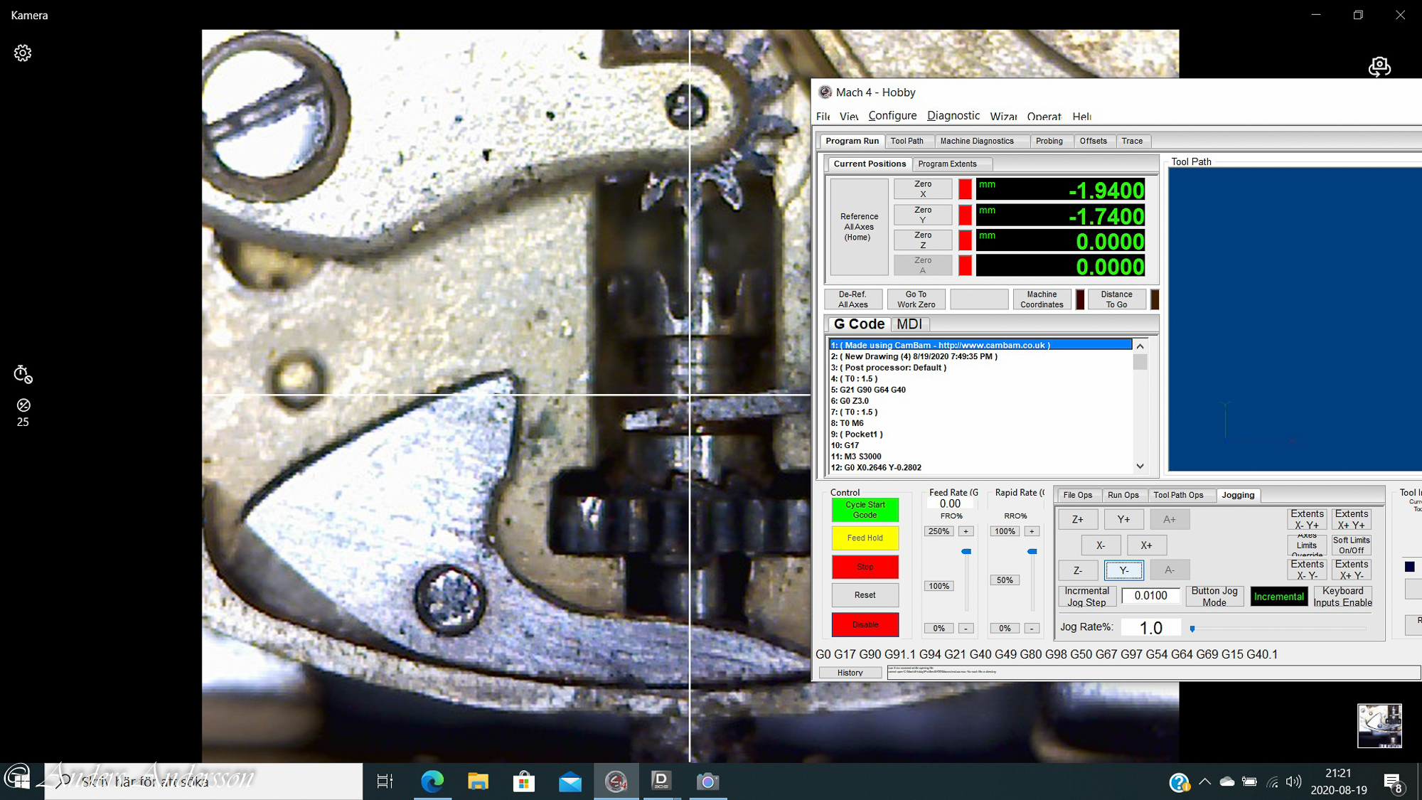 Tog hjälp av CNC-fräsens koordinatsystem tillsammans med en USB-kamera. En kombination som jag aldrig jobbat med tidigare – modernt värre. Men väldigt smidigt.