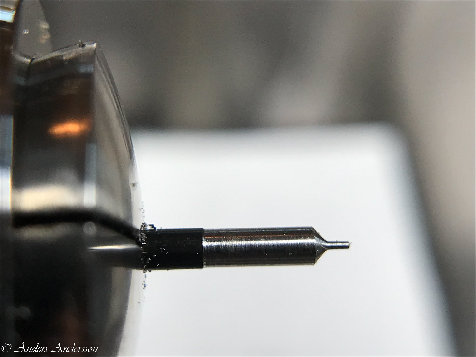 20200909-iPhone-0539 Publicerat 6 december, 2020 kl. 2000 × 1500 i 20200909-iPhone-0539 Svarvar en centreringsspets som jag senare ska sätta upp i fräsmaskinen.