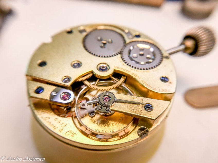 07920200721-iPhone-0288 Publicerat 5 september, 2020 kl. 2000 × 1500 i L. Leroy no 6511 – jakten på de försvunna stenarna Provar i klockan med motstenen på plats – balansen snurrar på fint!