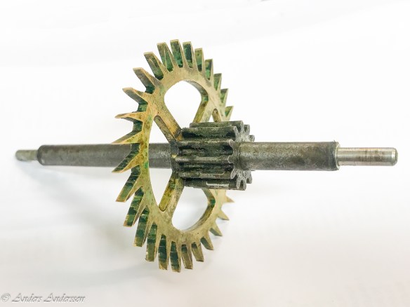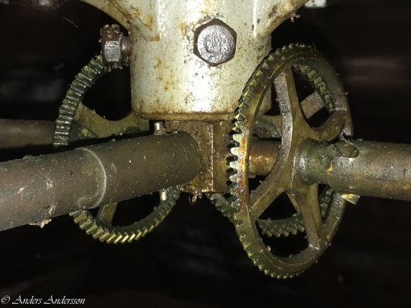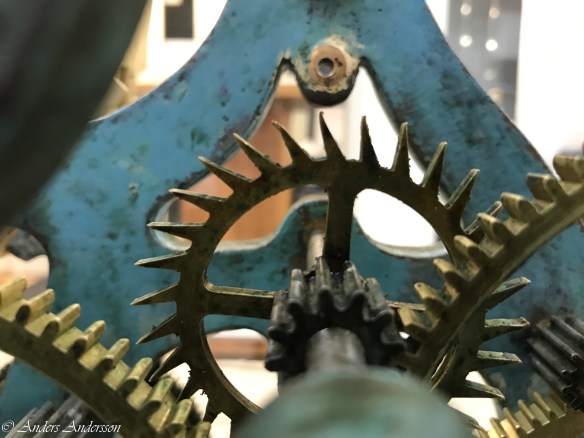 En av visarväxlarna. De är placerade precis bakom urtavlorna.