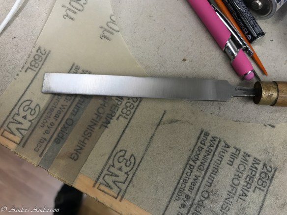 Skärper filen med ett 60 mic slippapper.