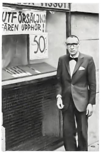 ”Farväl till alltihopa…” Siste innehavaren av firman Tornberg, Olof Selmer, lägger ned rörelsen efter sina 40 år i företaget. Bild från SUOT 1972-12.