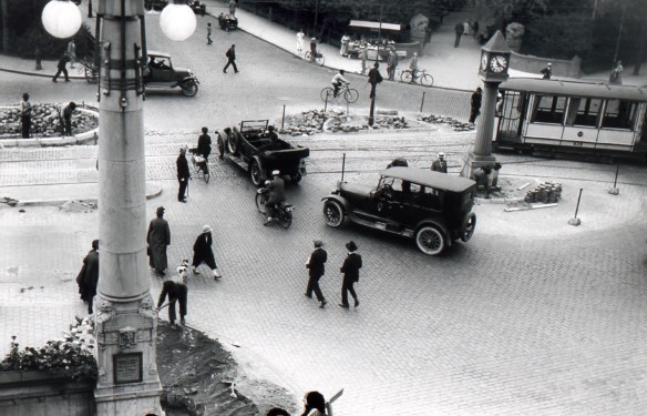 Nybroplan med Tornbergs klocka. Foto från 15 augusti 1925. Upphov: Okänd. Spårvägsmuseet