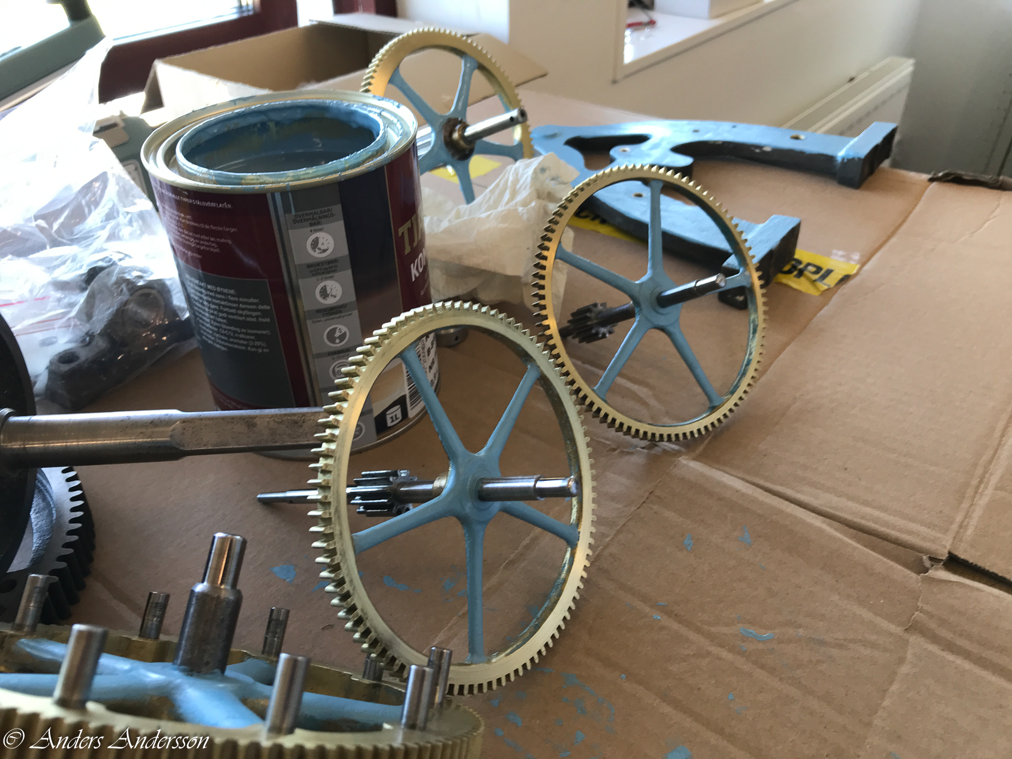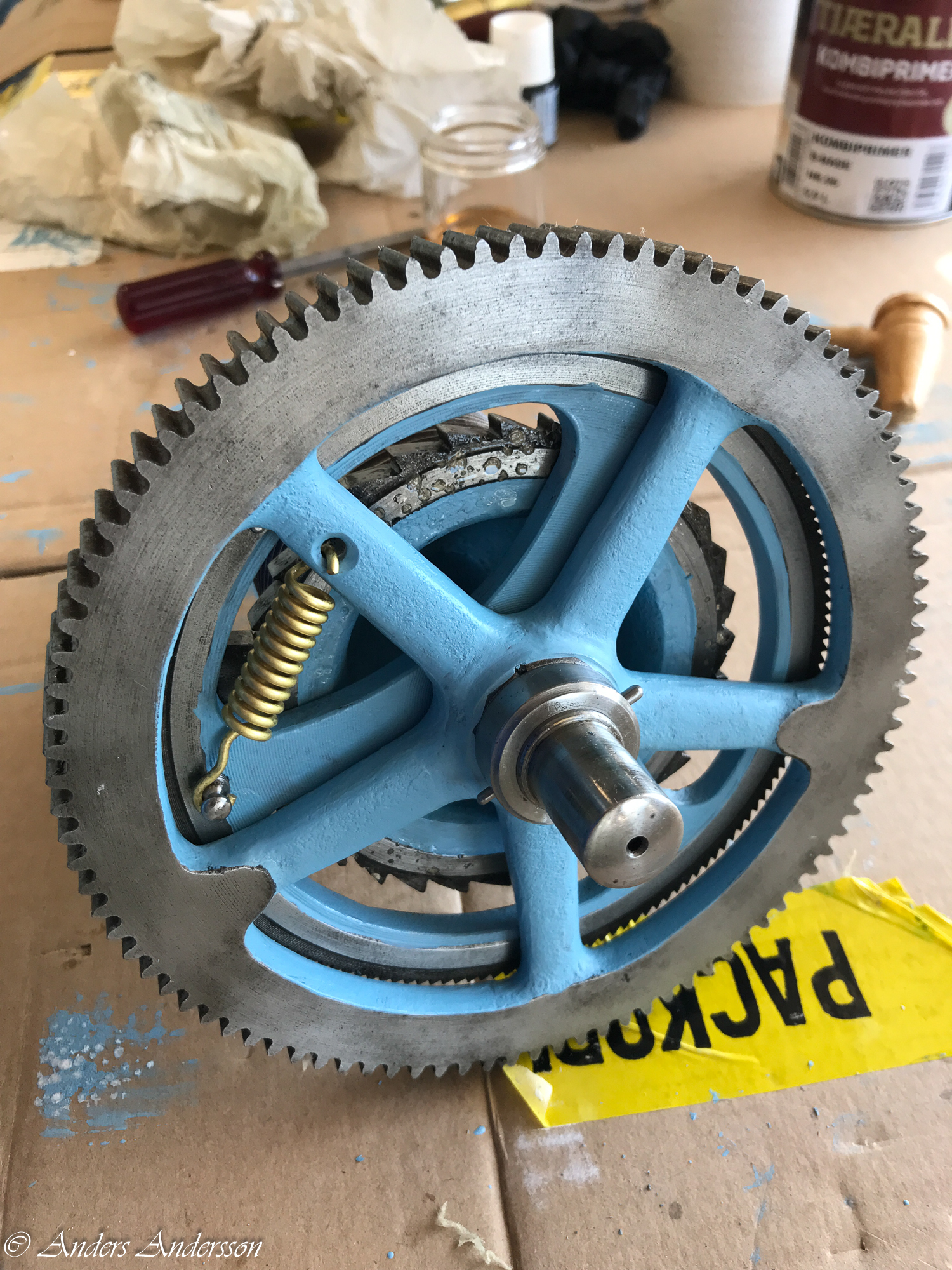 Dags att ta isär urverket. Limmade på lite skumplast på verkringen för att inte göra märken på verket.