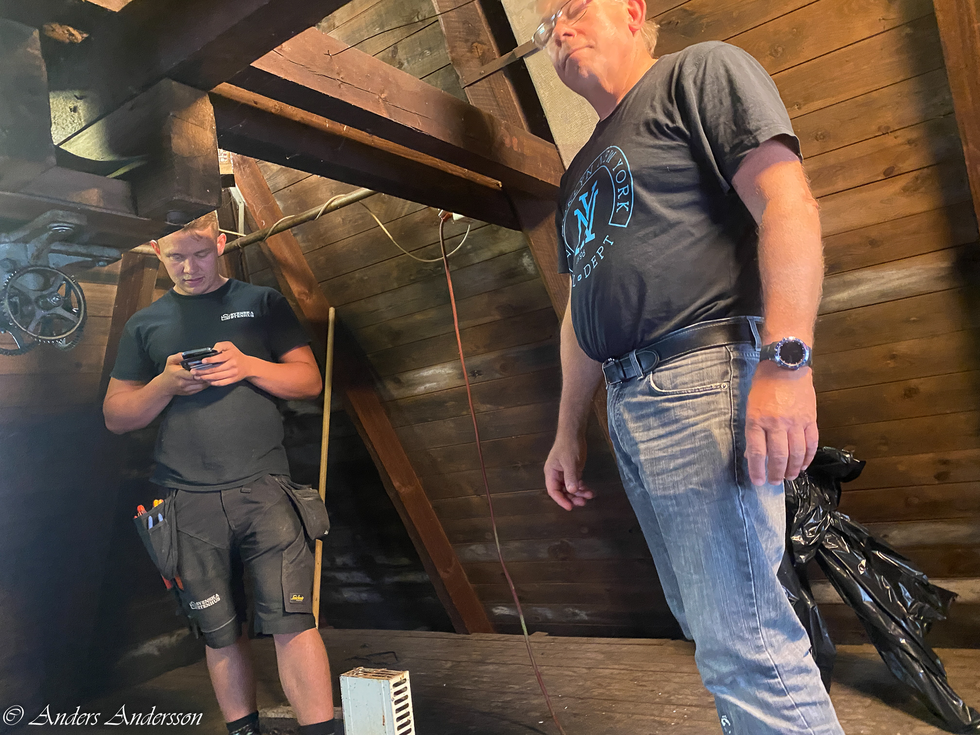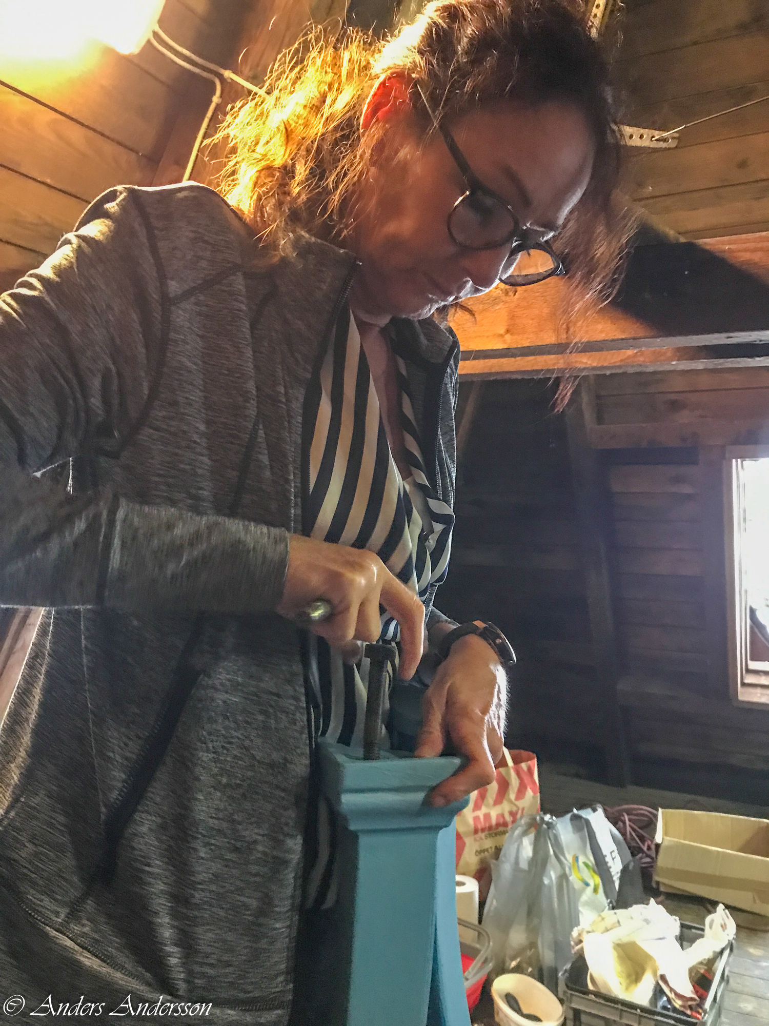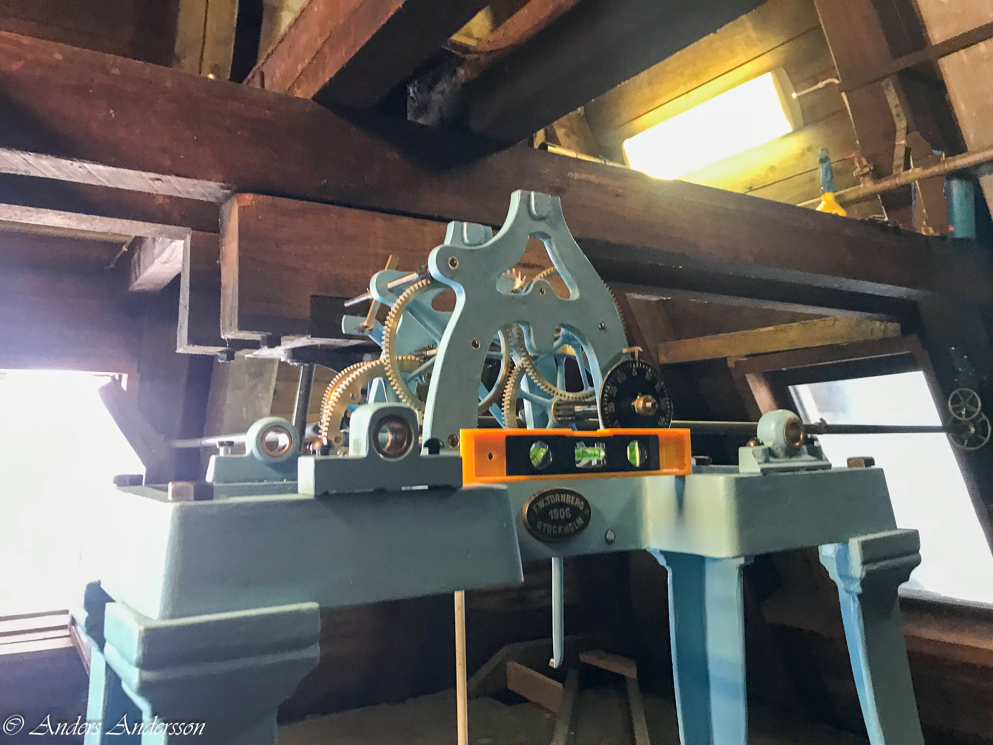 Jag ställer verket upp och ner för att kontrollera att haken står helt lodrätt. Annars kanske den måste vägas av.