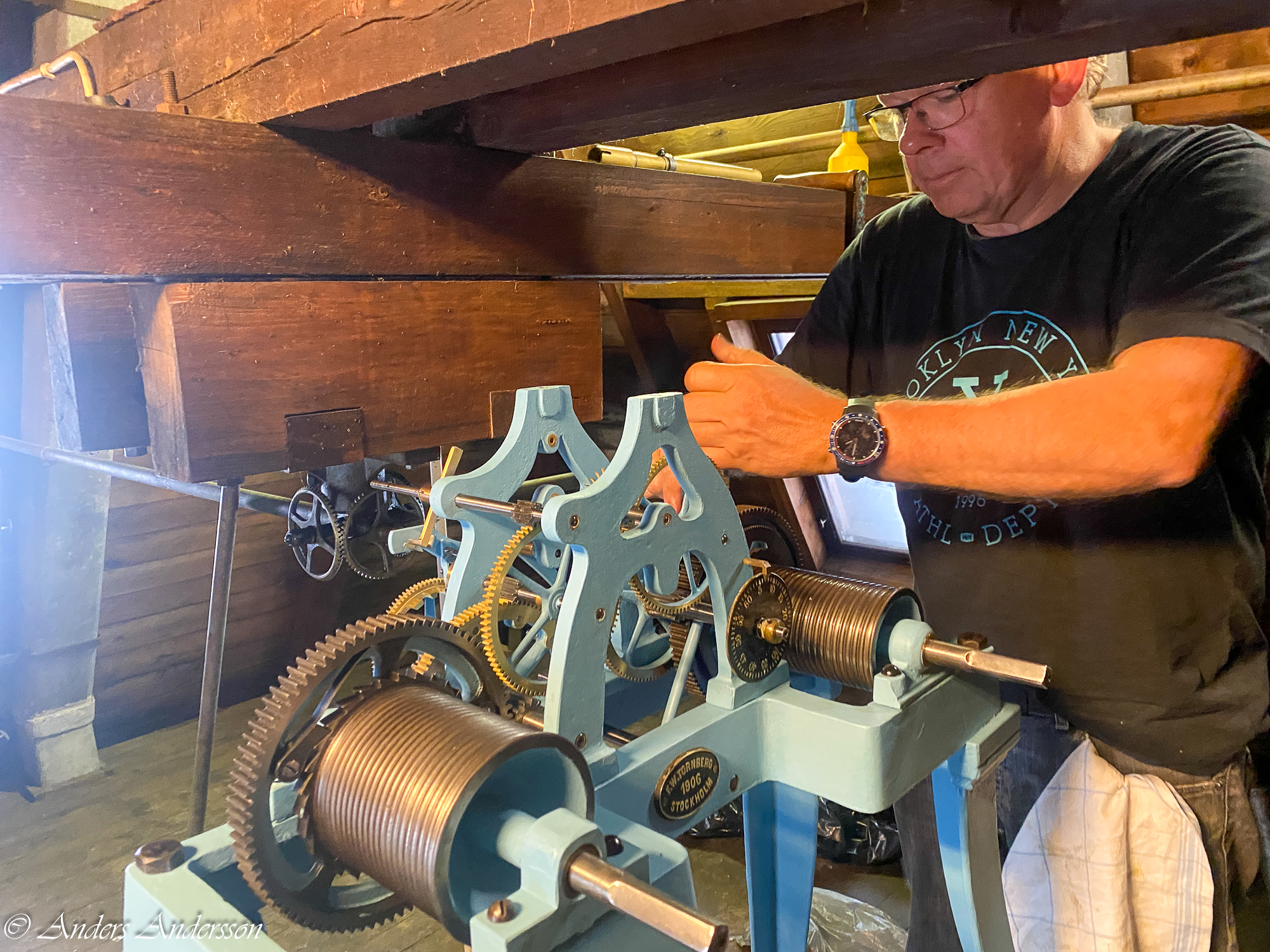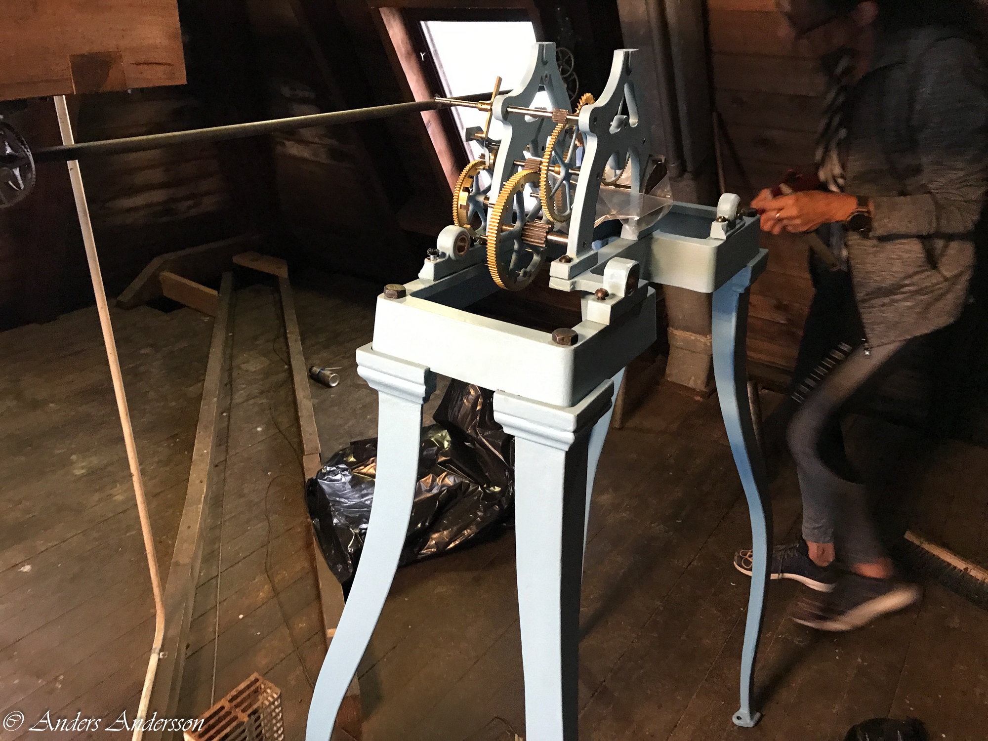 Först låser jag balansen med transportsäkringen, en spak vid klockan sex under urtavlan.