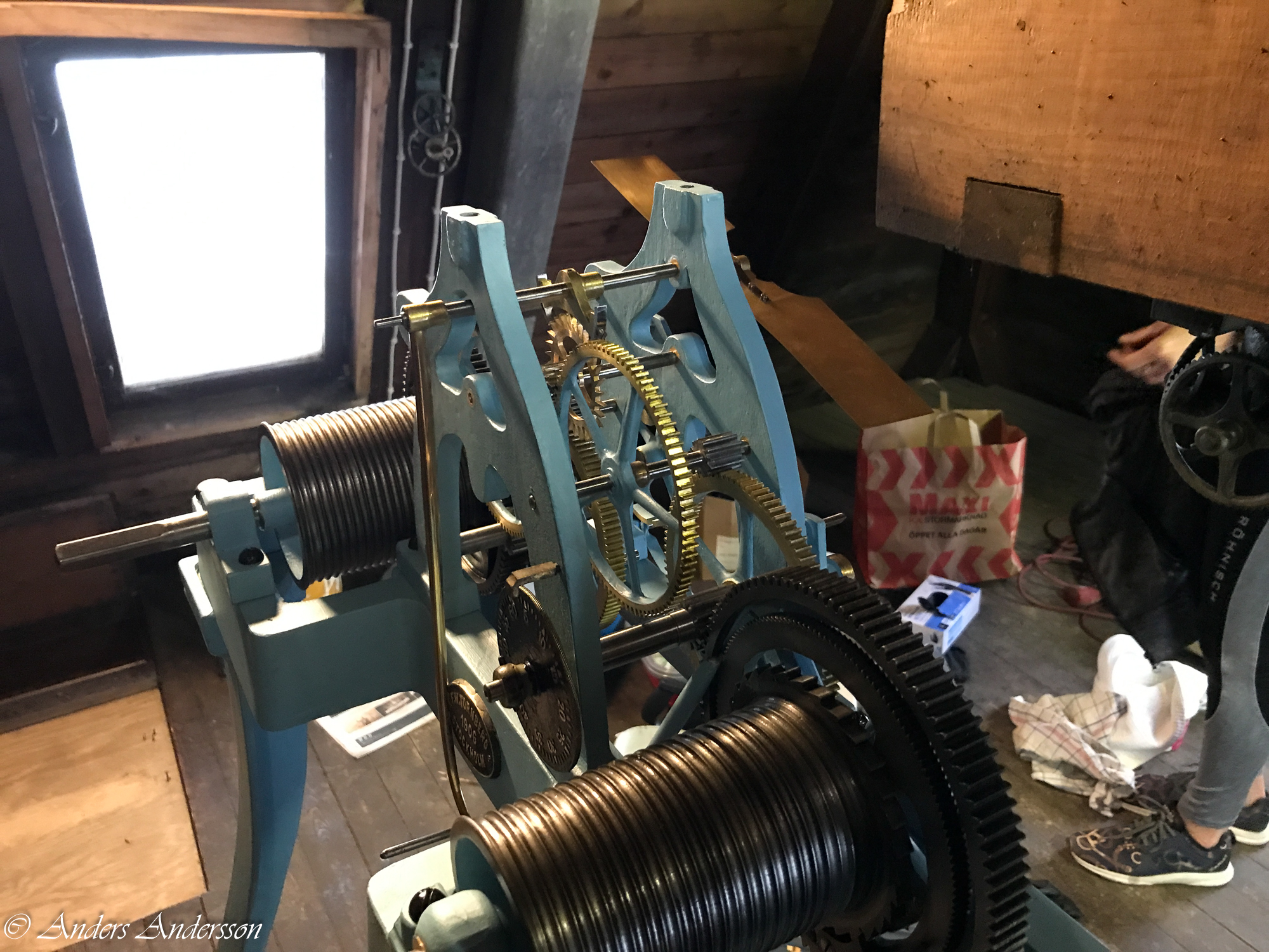 Urverket delat.