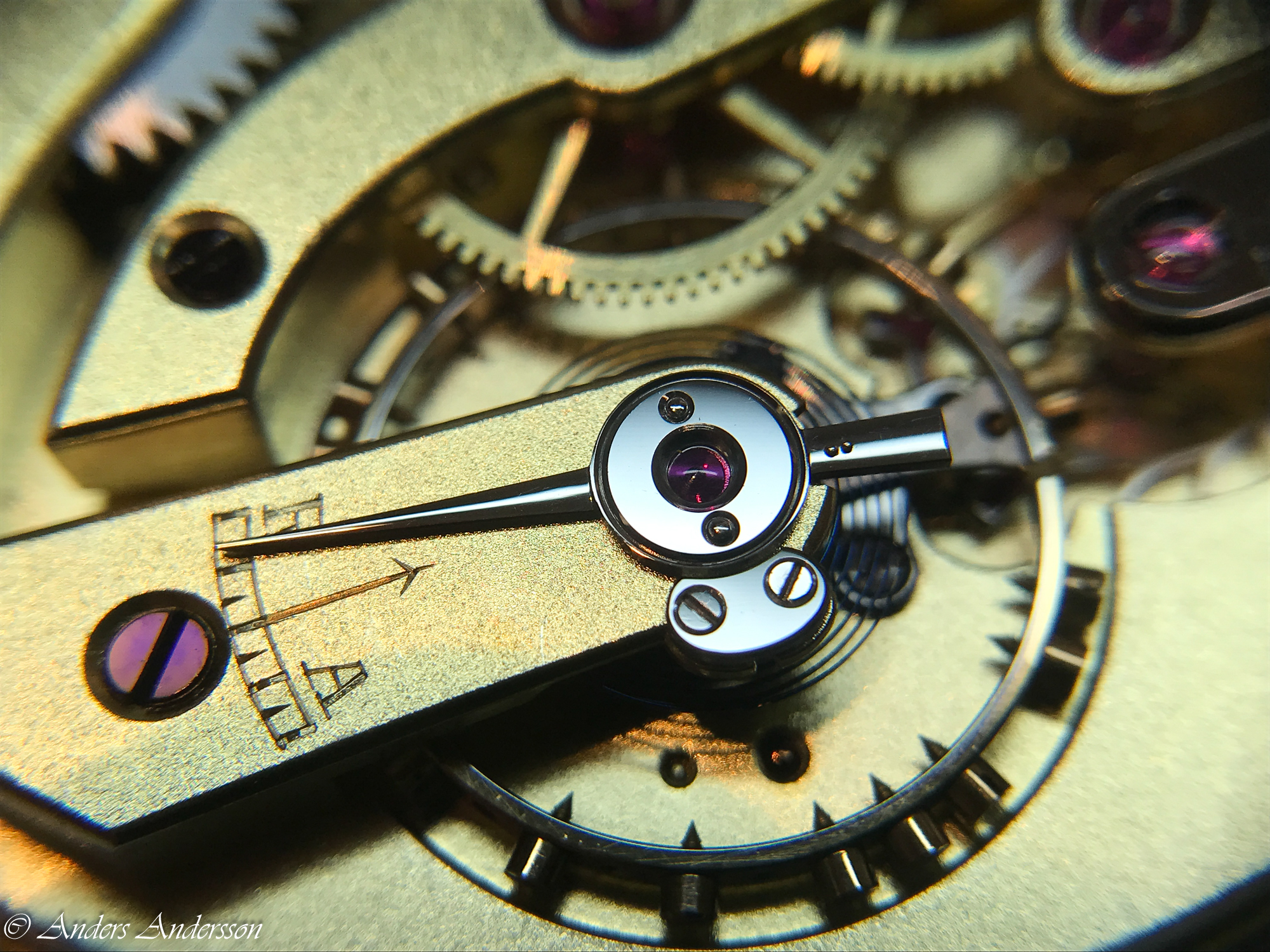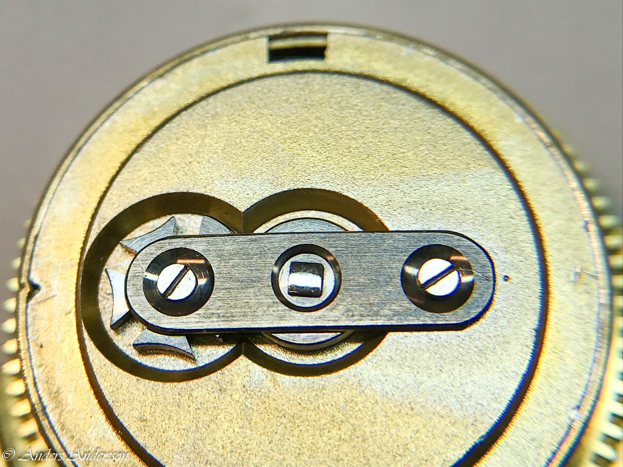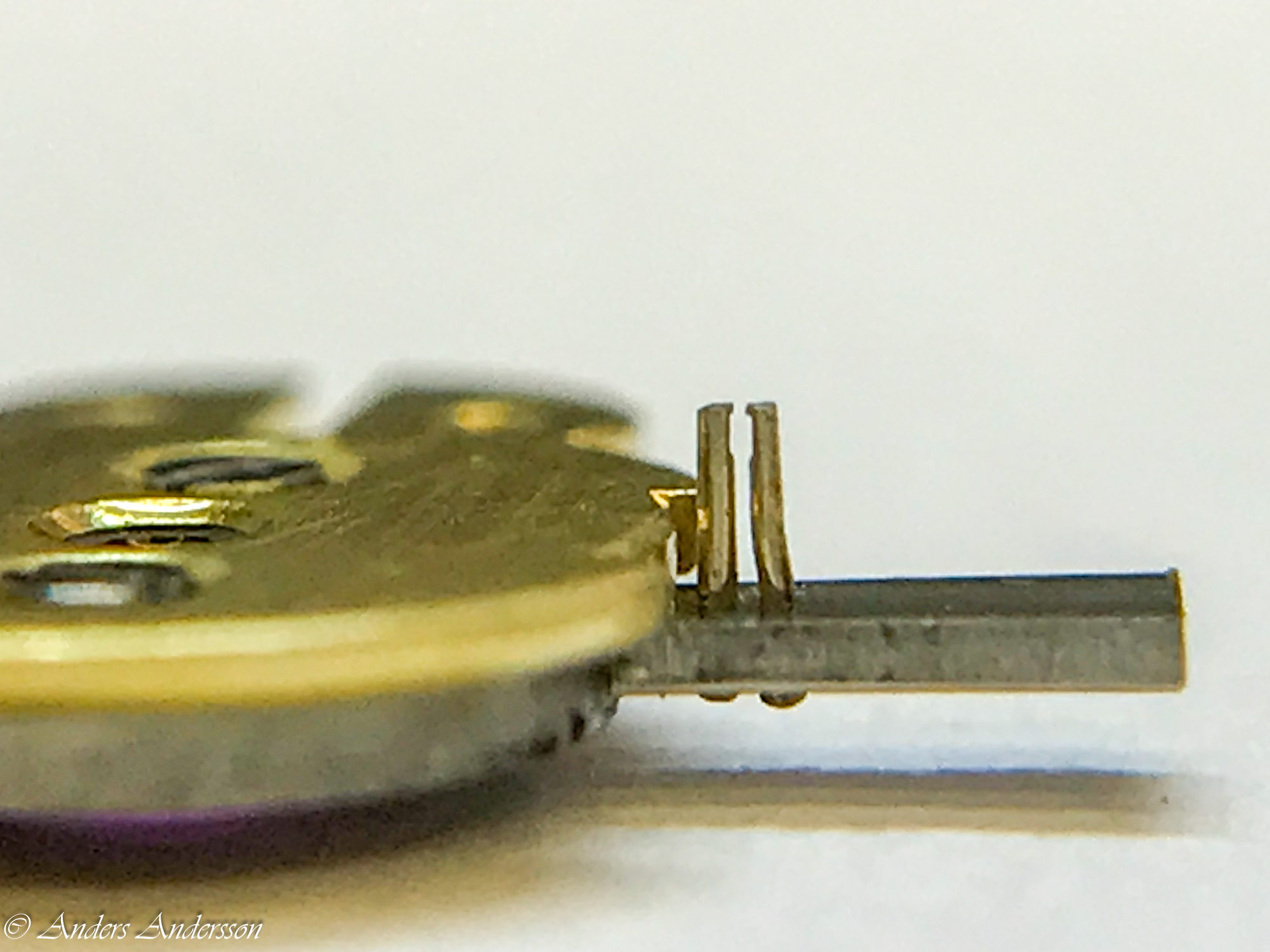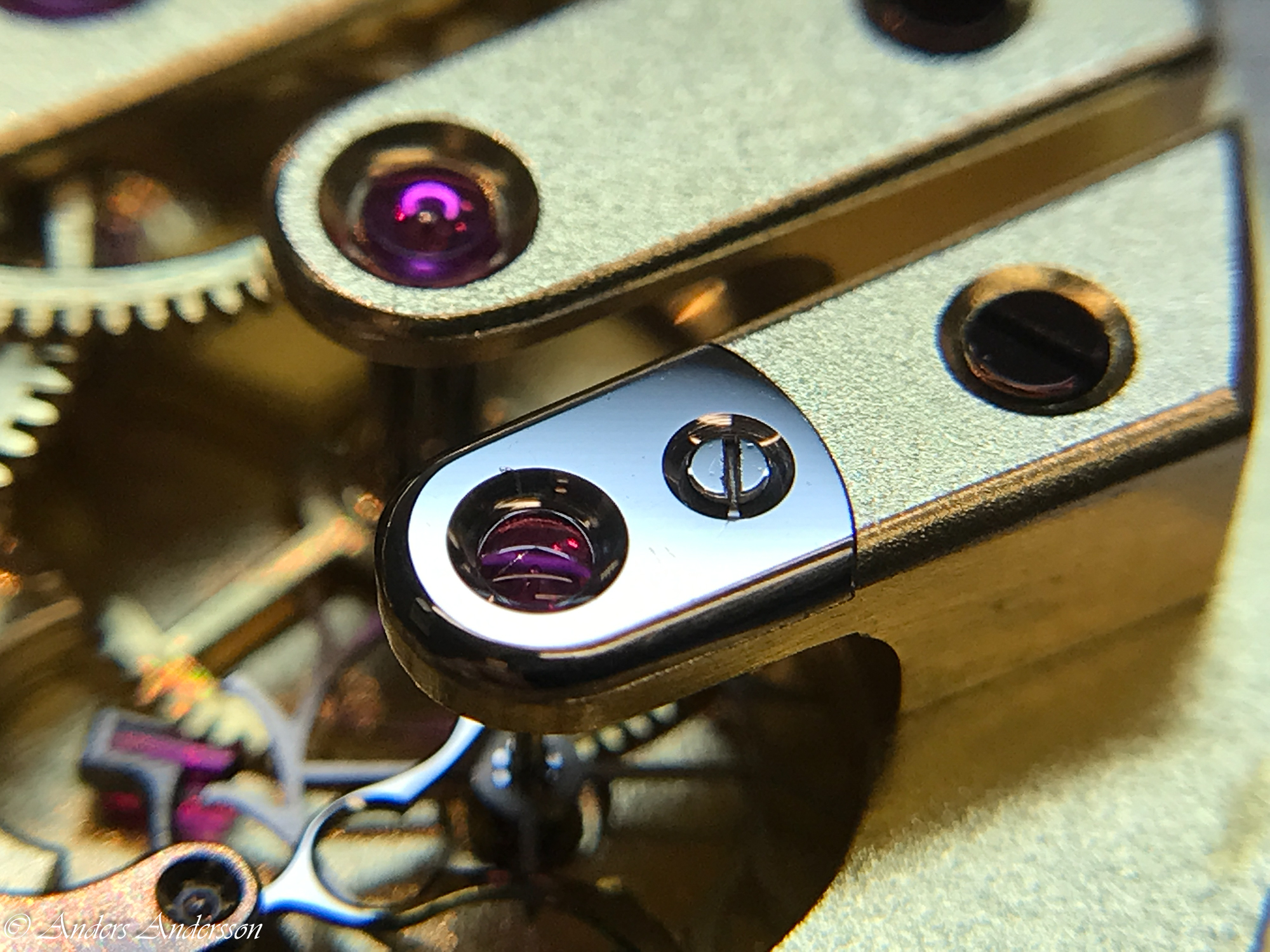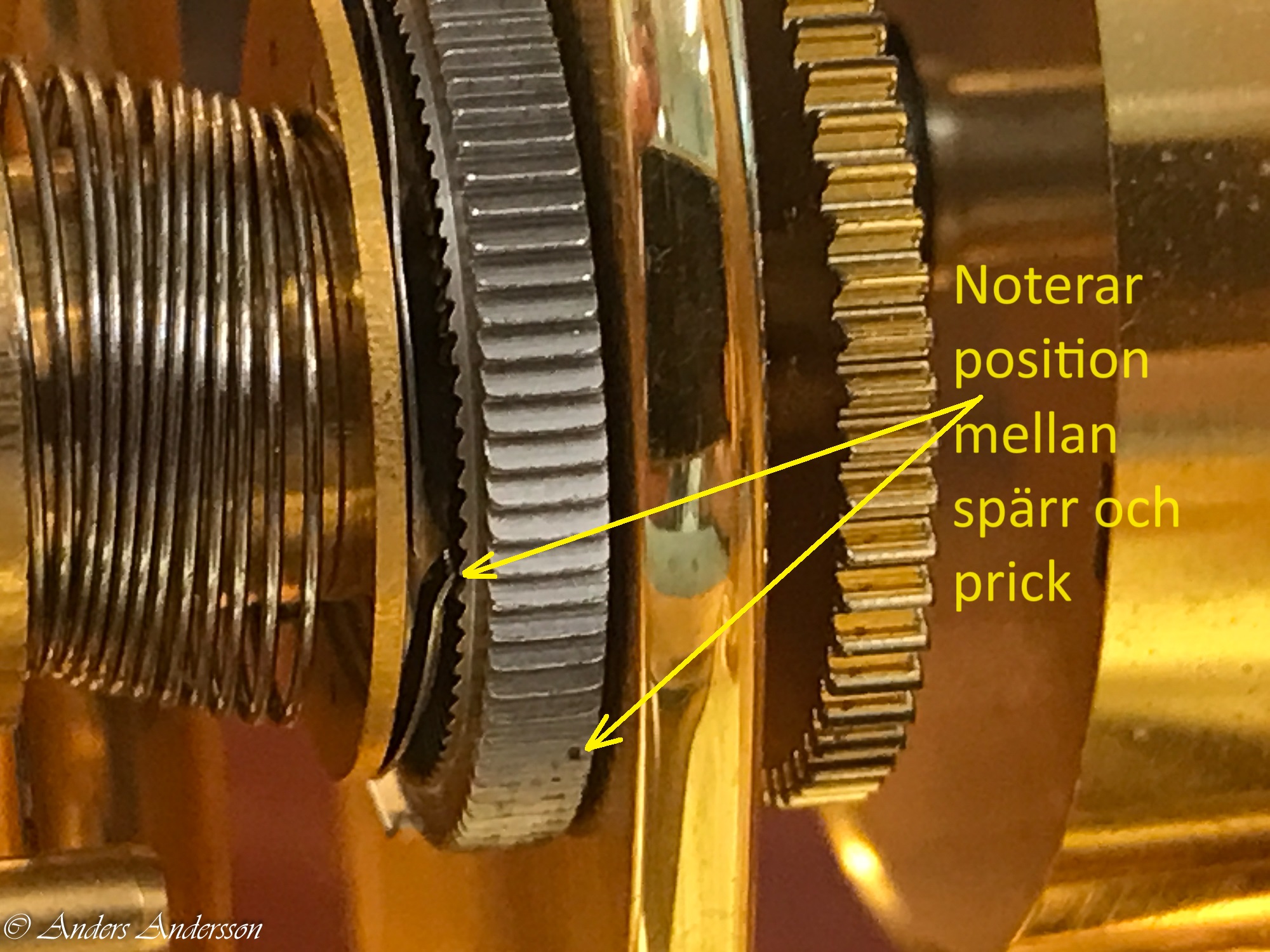 Detantfjäder, guldfjäder och vilsten såg fina ut. Den undre balanskloven var även den lutande och filad på.
