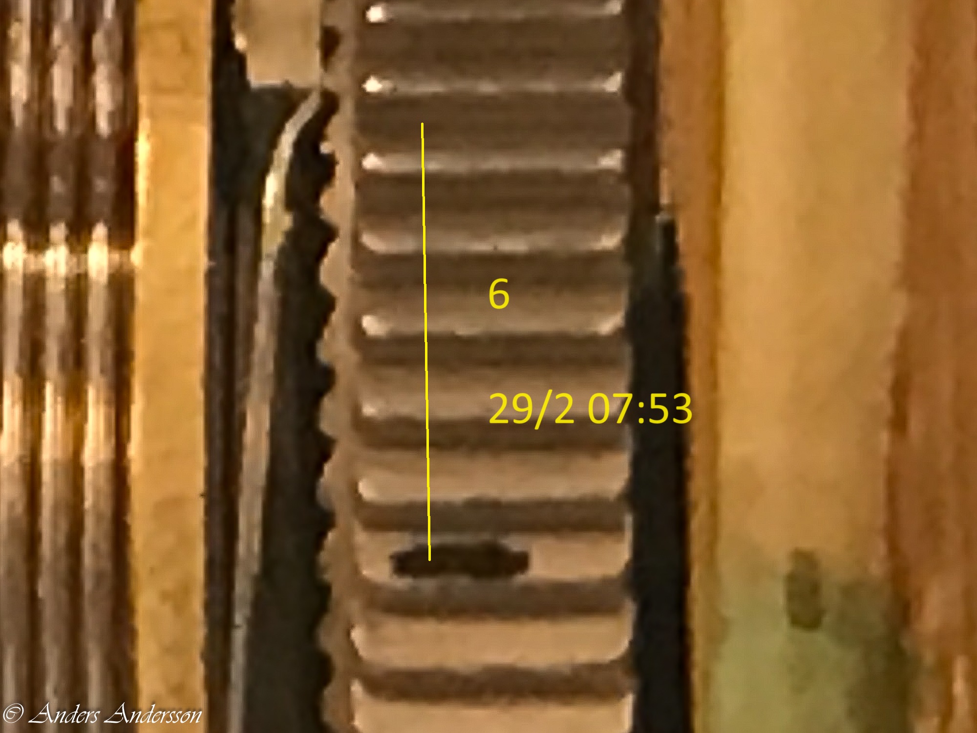 Notera de tunna tapparna på gånghjul och hake – fickursdimensioner.