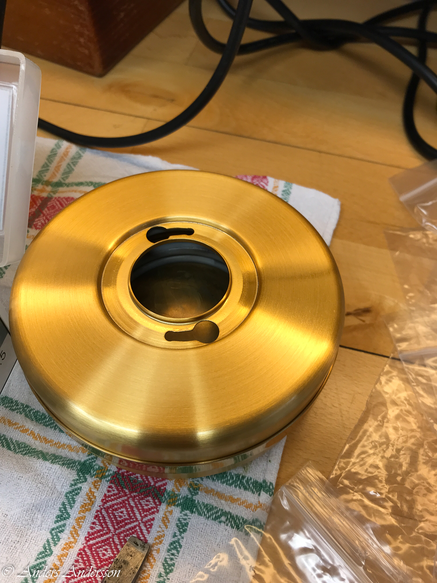 Svarvade en ocentrerad ”testchaton” i mässing och pressade in en syntetisk rubin.