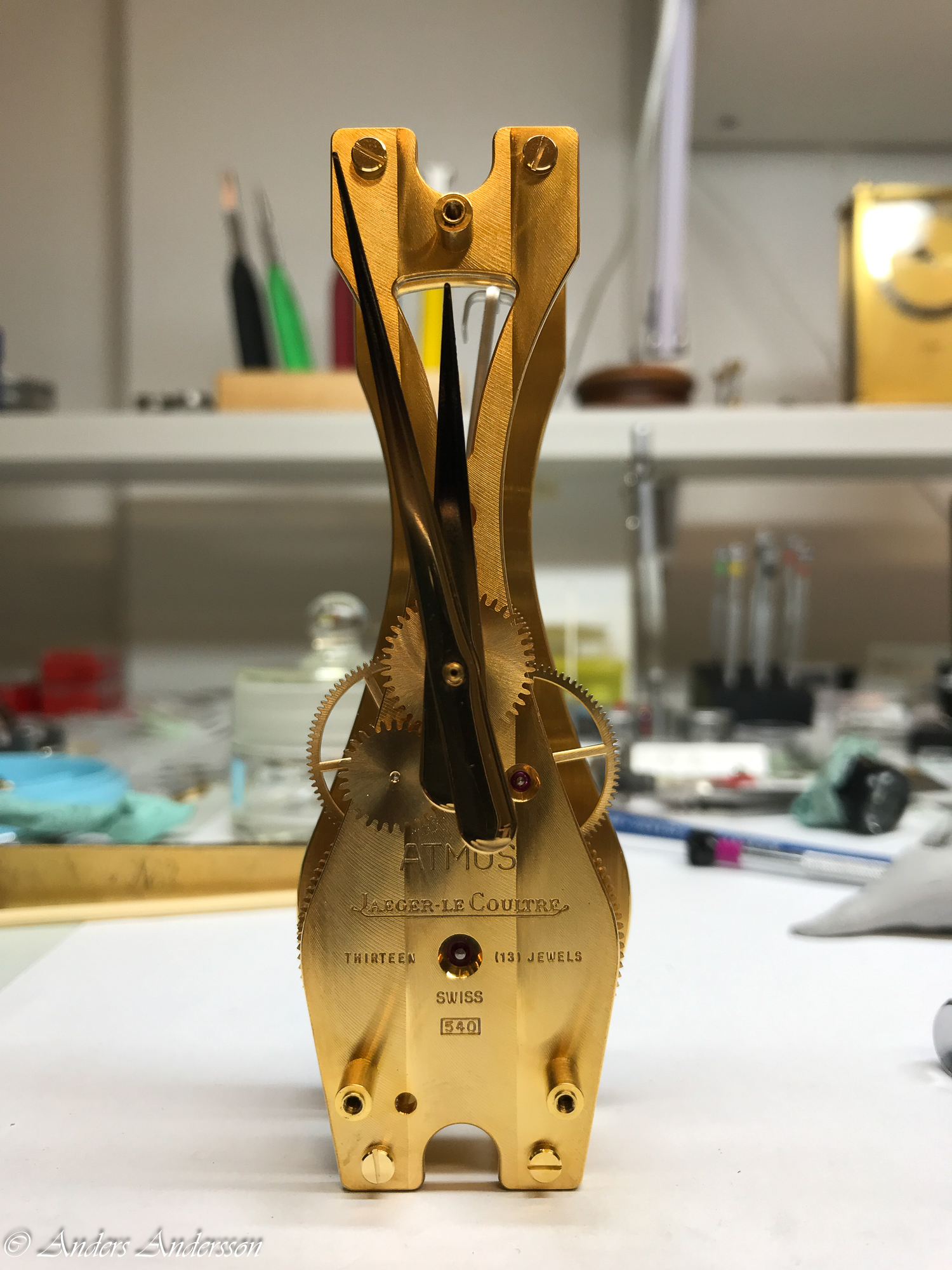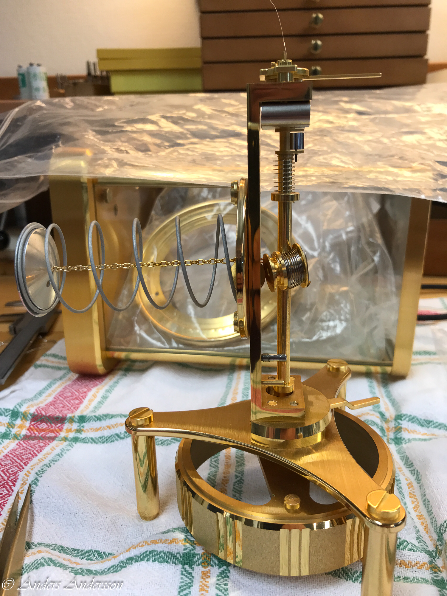 Först låser jag balansen med transportsäkringen, en spak vid klockan sex under urtavlan.