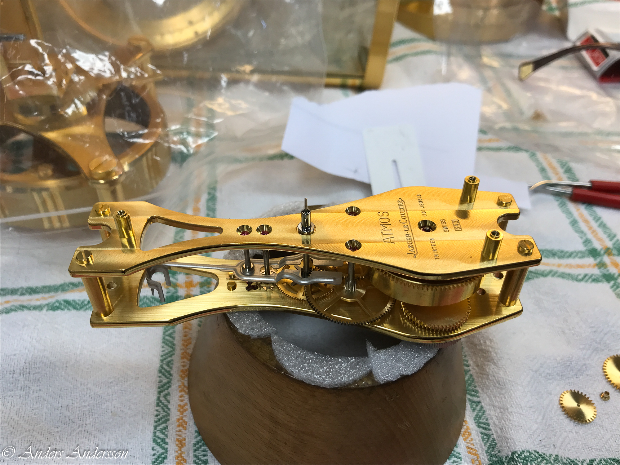 Dags att ta isär urverket. Limmade på lite skumplast på verkringen för att inte göra märken på verket.