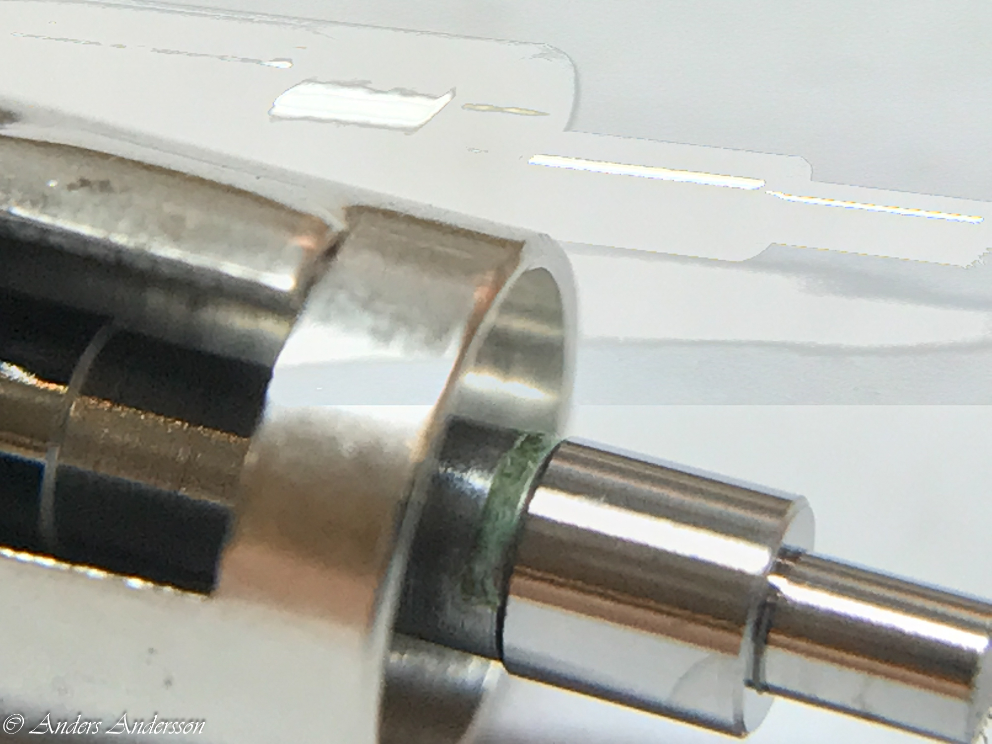 Här kan man se en halvcirkel där balansen legat emot verkbottnen och skavt.