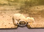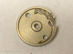 Bryggan för växelhjulet till indikatorhjulet. Den ska vara något böjd ned mot hjulet, hålet ska vara runt samt ytan mot hjulet plan och fin. Så var inte fallet här.